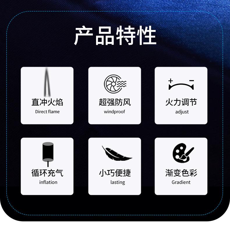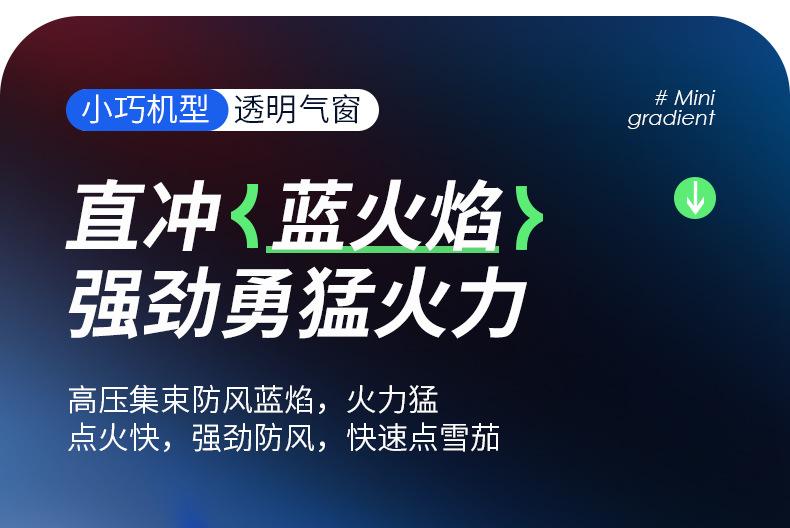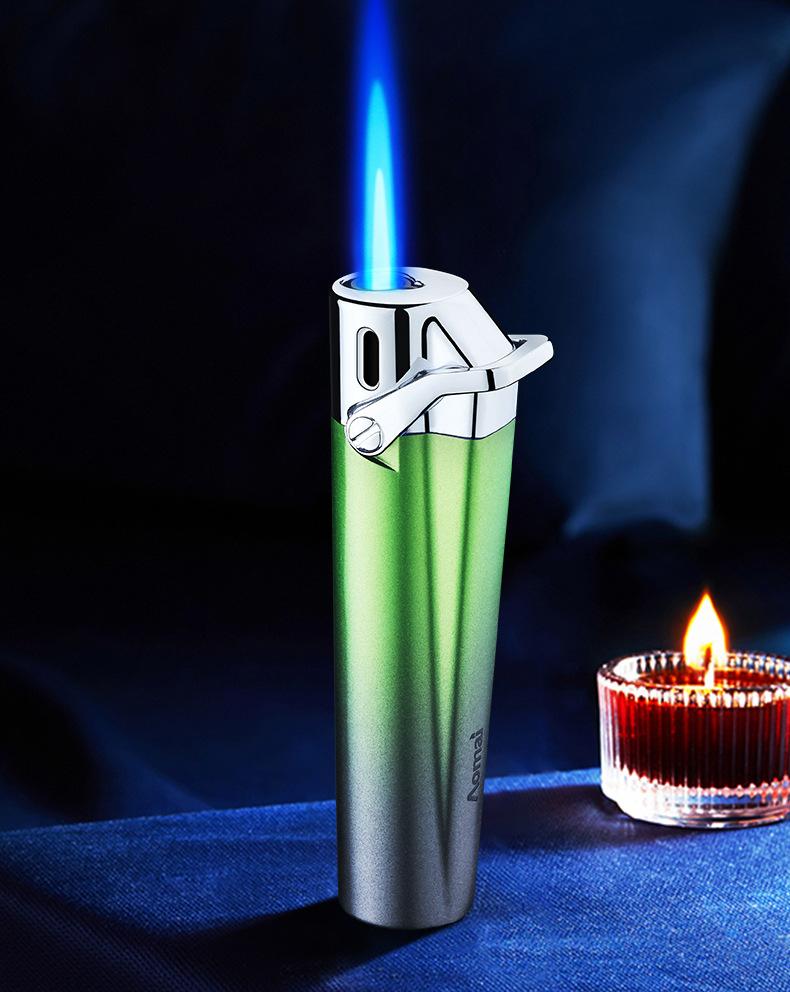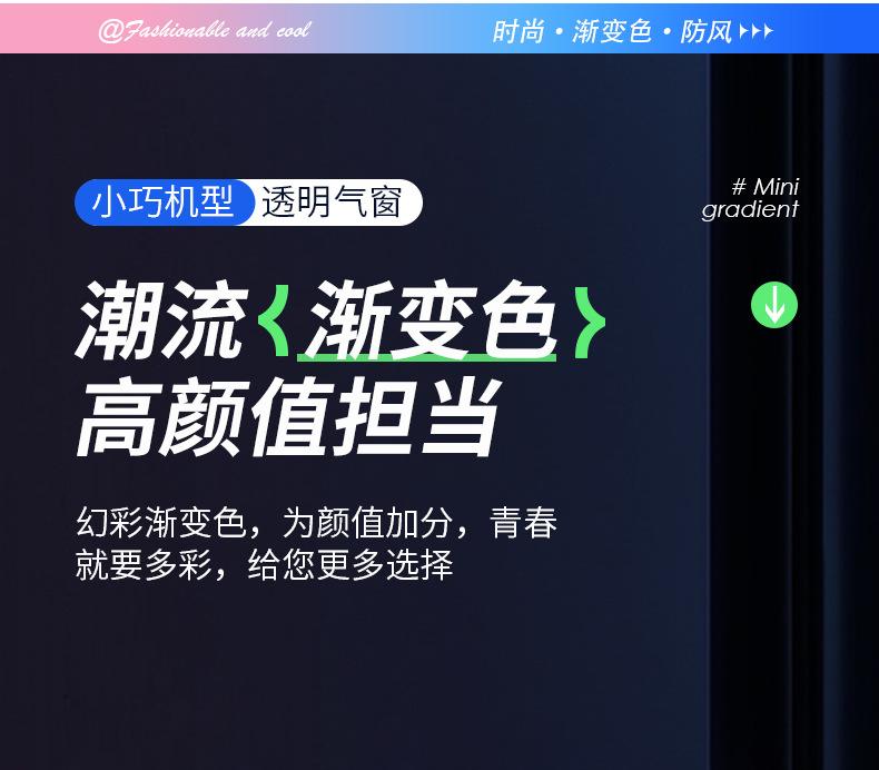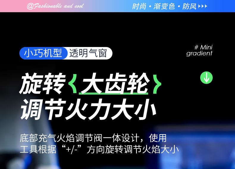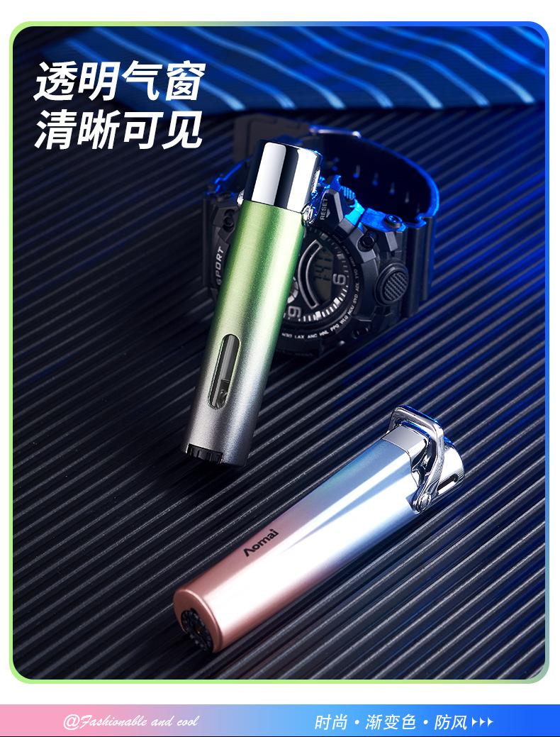 Encendedor inflable creativo a prueba de viento de alto valor de color degradado de llama azul, encendedor compacto de regalo para damas, encendedor de cigarrillos al por mayor
