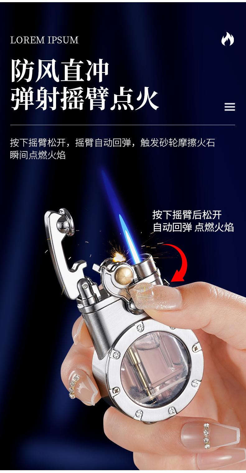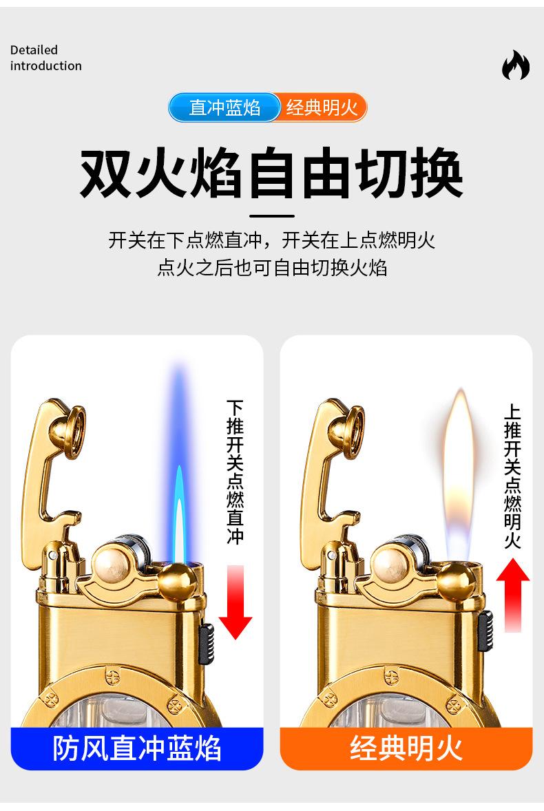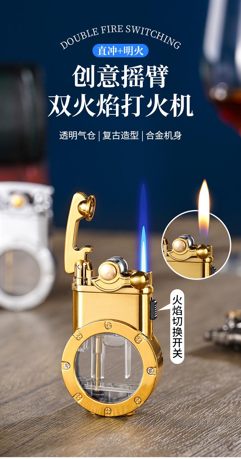 Encendedor inflable retro con encendido por balancín, cámara de aire transparente visible, doble fuego, conmutación libre, regalo de alta gama, venta al por mayor