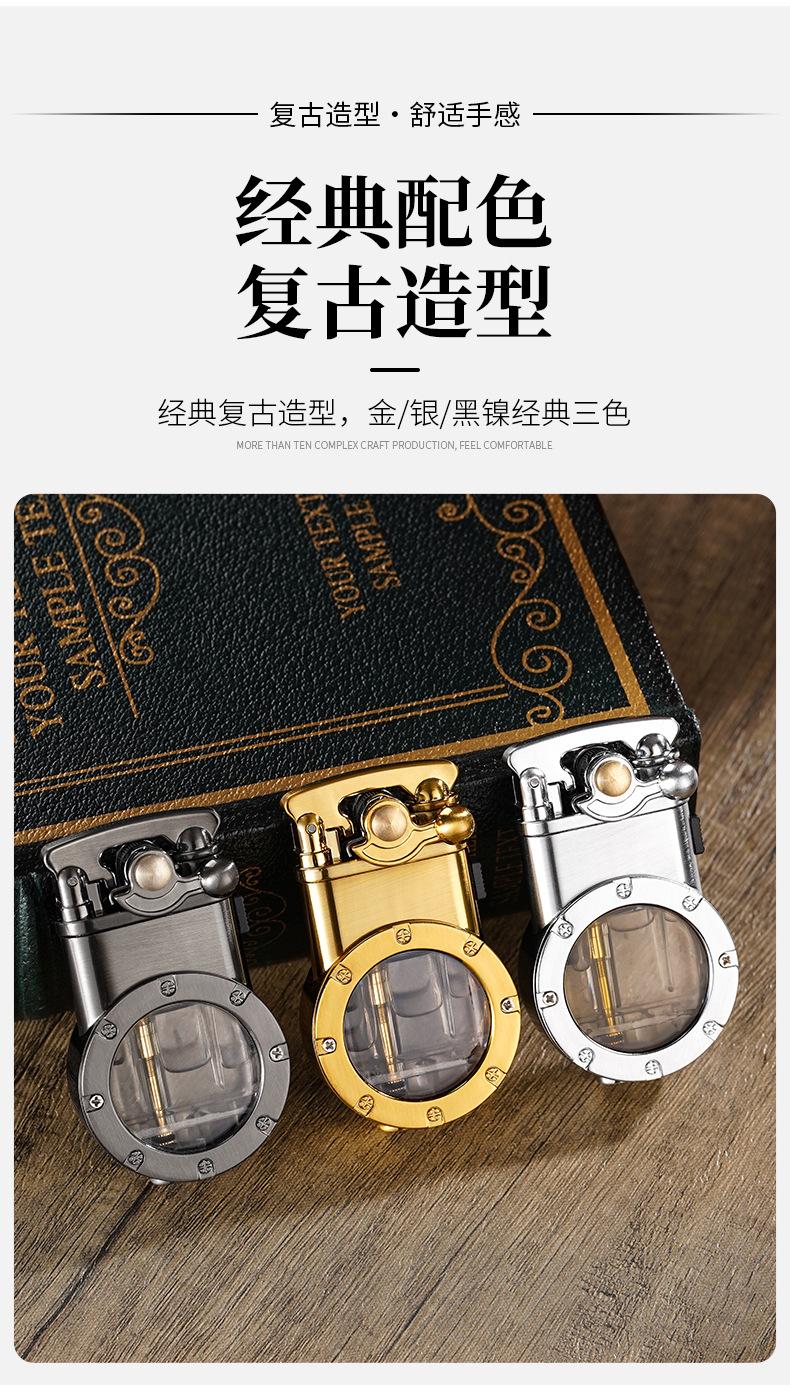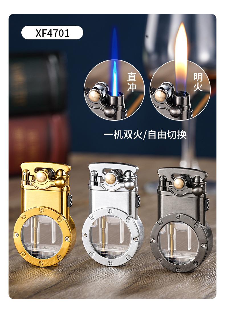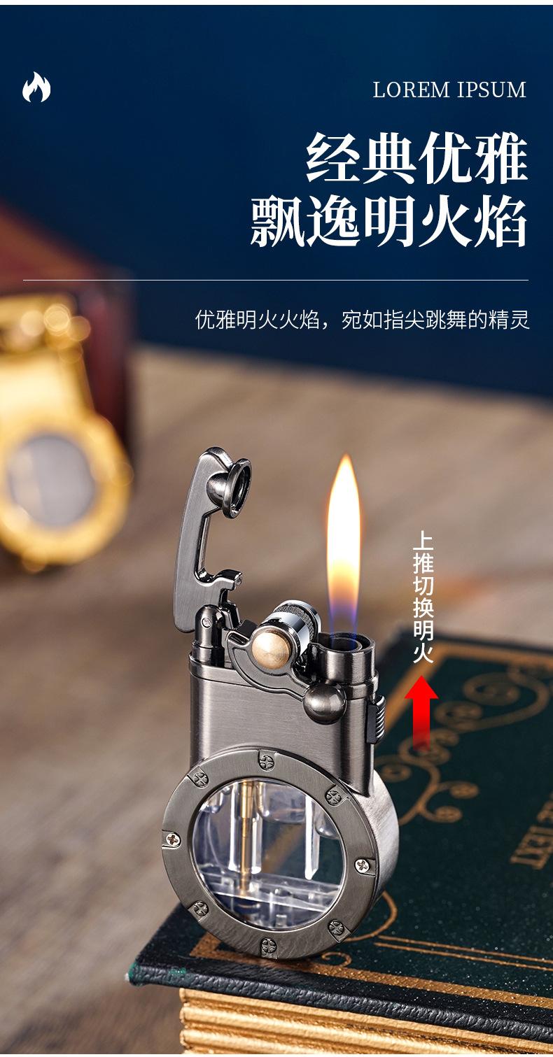 Encendedor inflable retro con encendido por balancín, cámara de aire transparente visible, doble fuego, conmutación libre, regalo de alta gama, venta al por mayor