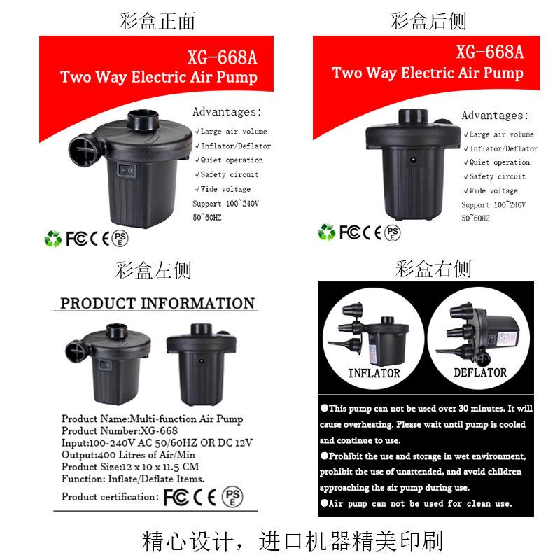 Es adecuado para inflar flotadores, colchonetas inflables, camas inflables y otros productos. No es adecuado para productos con alta presión de aire como balones de baloncesto y neumáticos.