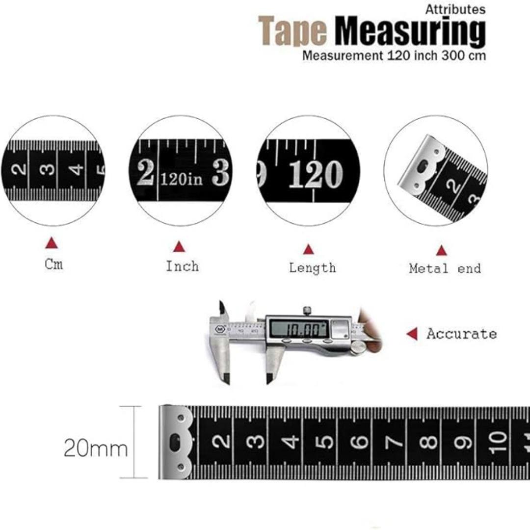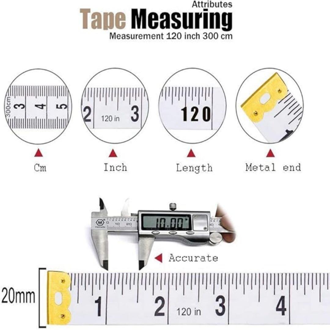 Cinta métrica de 3 m, regla de fibra de PVC, regla de sastre, regla para abrigos, cinta métrica suave, 300 cm, 120 pulgadas, cinta métrica doméstica amarilla