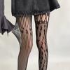 Nuevas medias de red huecas de encaje, medias largas de encaje por encima de la rodilla con lazo en color contrastante, lindas medias de red de pesca de mucama divertidas