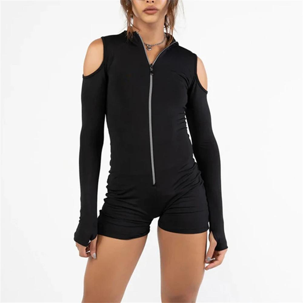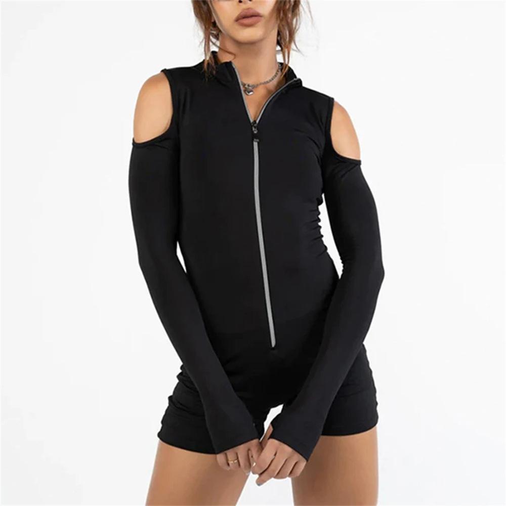 Mono de otoño europeo y americano nuevo con cremallera, manga larga hueca, personalidad delgada, temperamento, color puro, venta al por mayor, comercio exterior