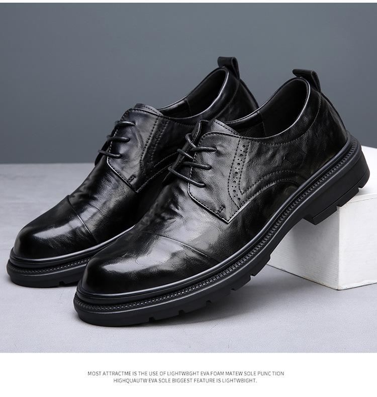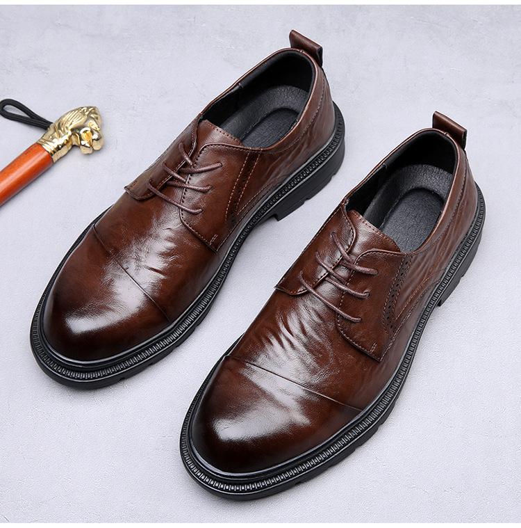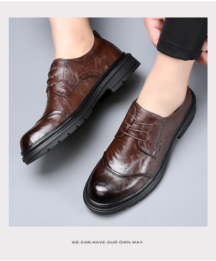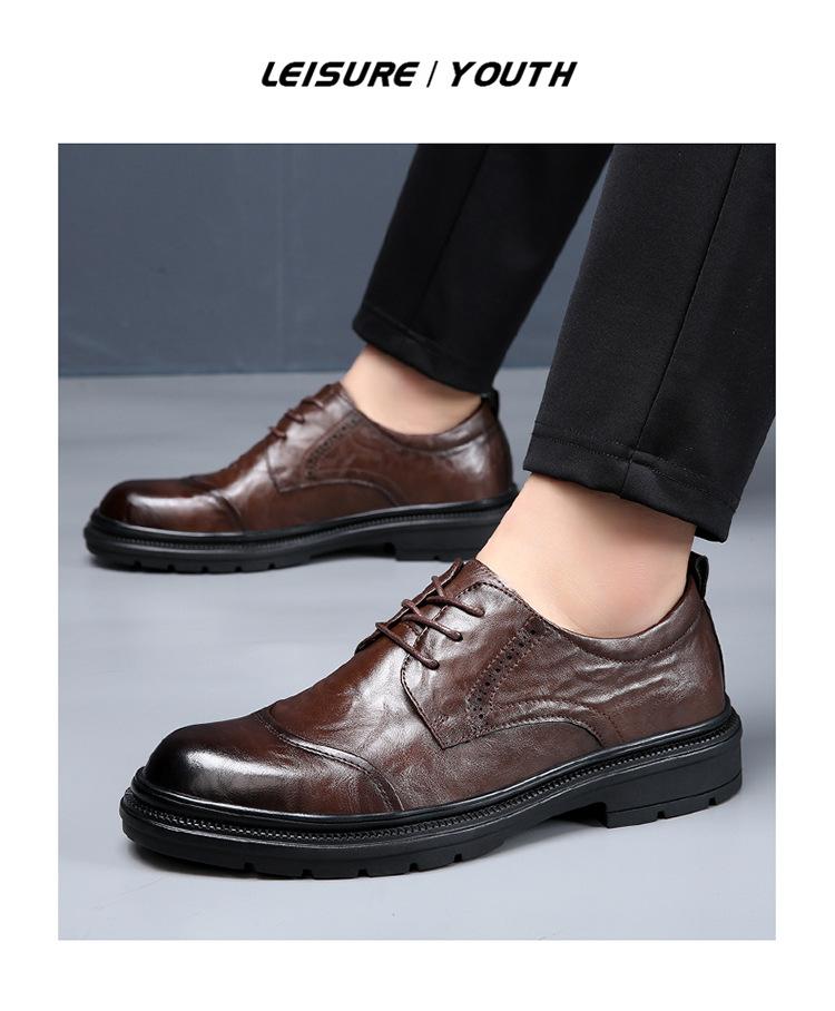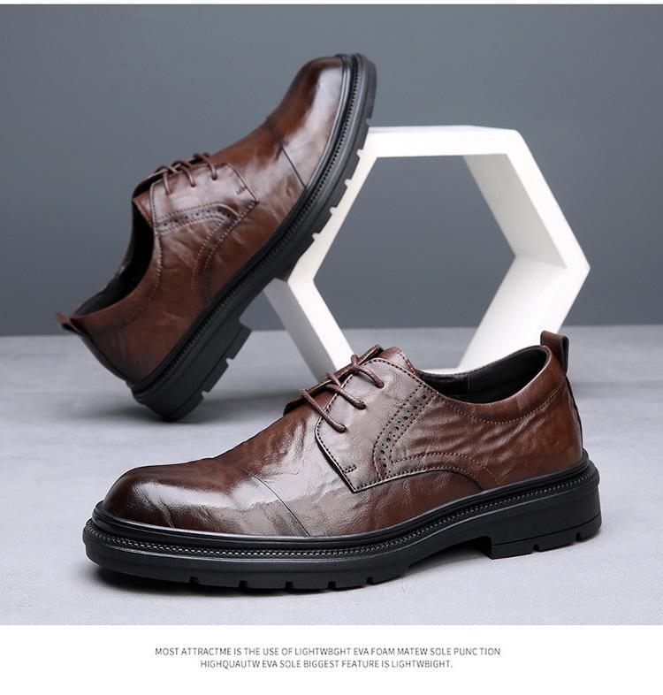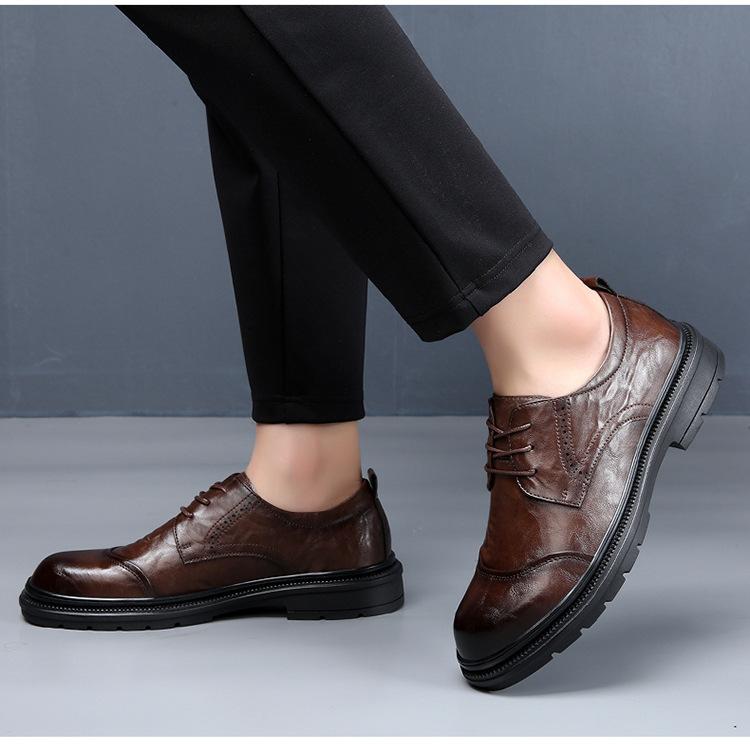 Zapatos de Hombre Primavera Transpirables 2025 Nueva Tendencia Zapatos Casuales Cuero Genuino Suela Gruesa Británico Negocios Formal Zapatos de Cuero para Hombre