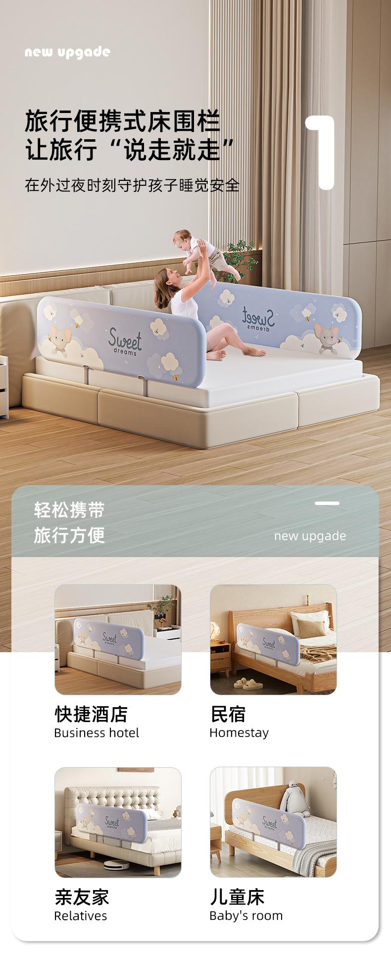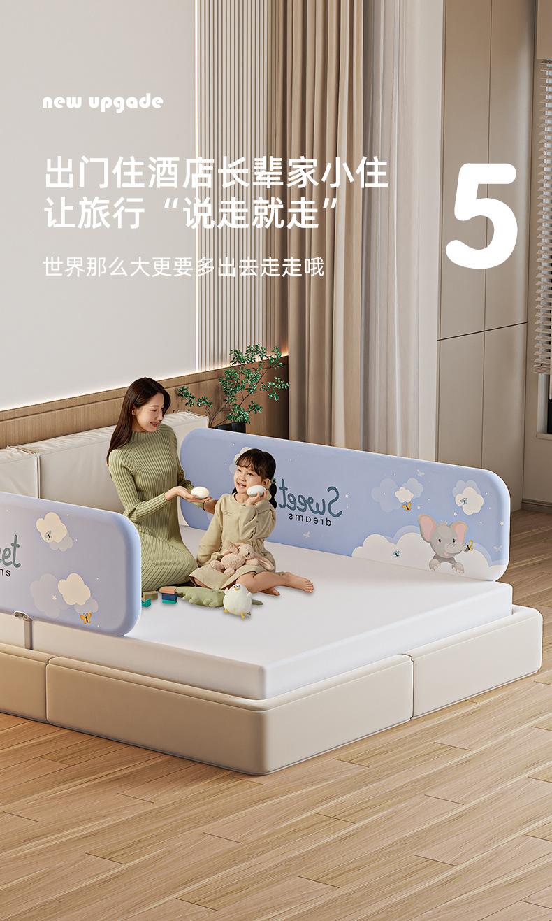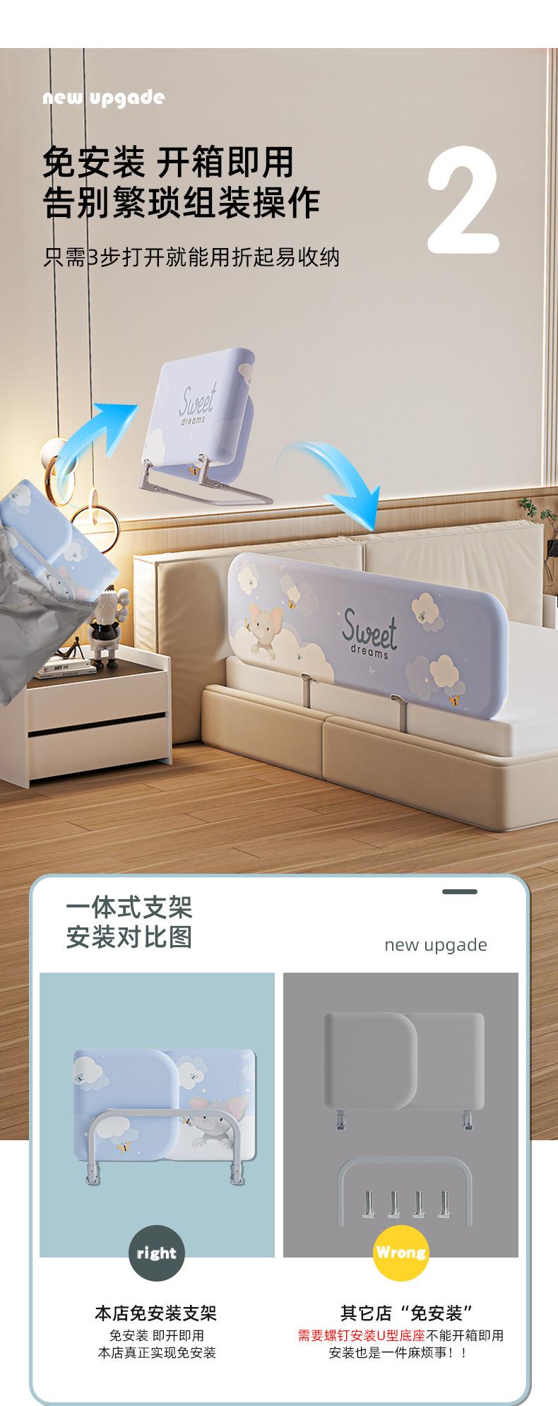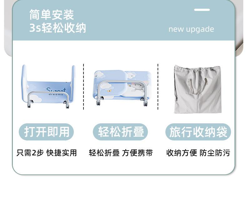 Valla de cama sin instalación Valla protectora para bebés resistente a caídas Valla de viaje portátil plegable Deflector de seguridad para bebés
