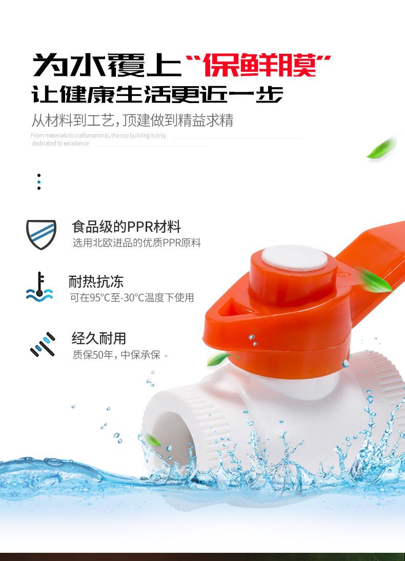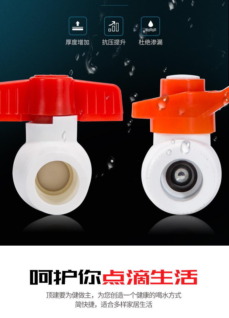Válvula de bola con núcleo de acero de plástico de construcción superior, engrosada, 20, 25, 32, 40 y 50 PPR, accesorios para tuberías de agua, válvula para tubería de agua del grifo