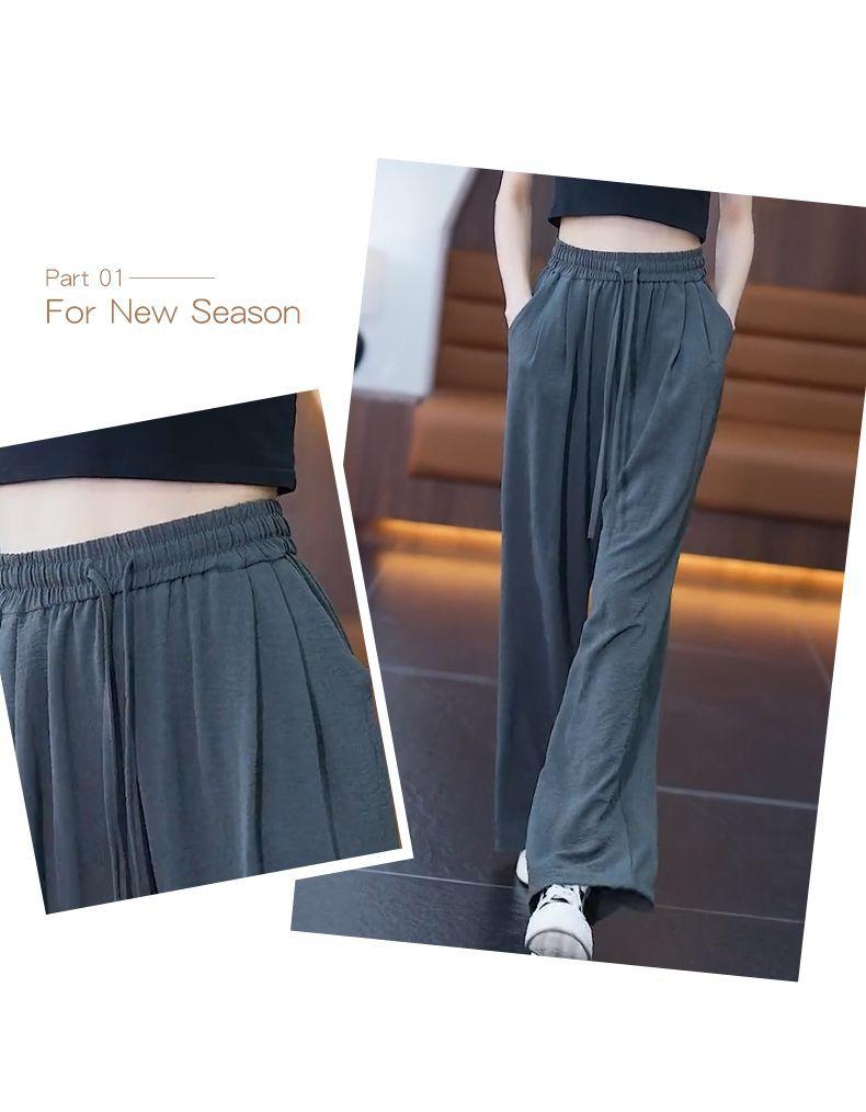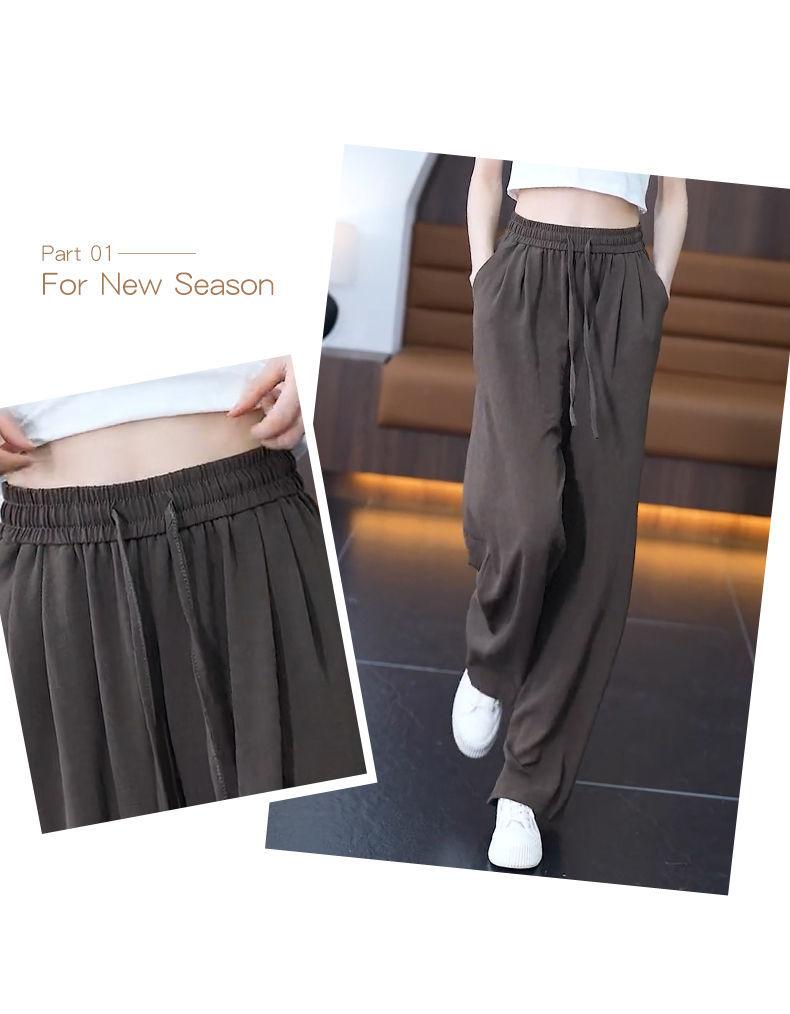 Pantalones anchos de seda para mujer, de verano, finos, holgados, ajustados, estilo informal, holgados, 2024