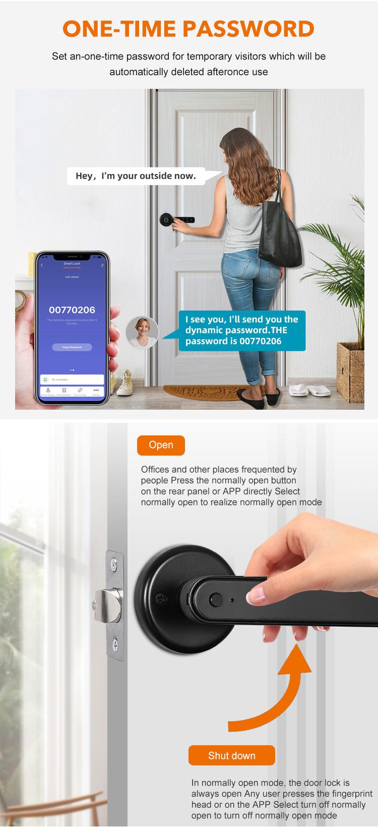 Cerradura de huella digital mantener abierta cerradura inteligente para el hogar puerta de seguridad puerta de madera cerradura inteligente para puerta cerradura electrónica de combinación manija