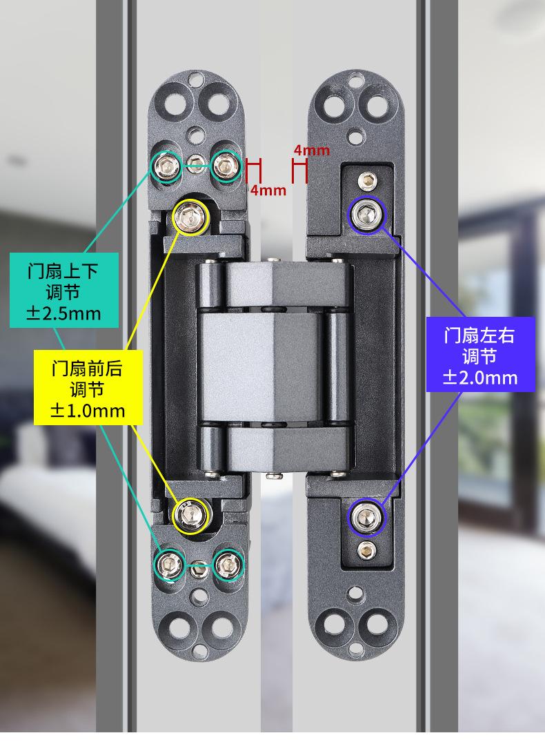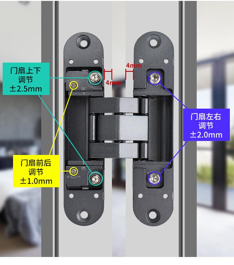 Bisagra invisible ajustable tridimensional, bisagra de puerta oculta, puerta de madera plegable, puerta oculta, bisagra cruzada oculta, bisagra invisible silenciosa