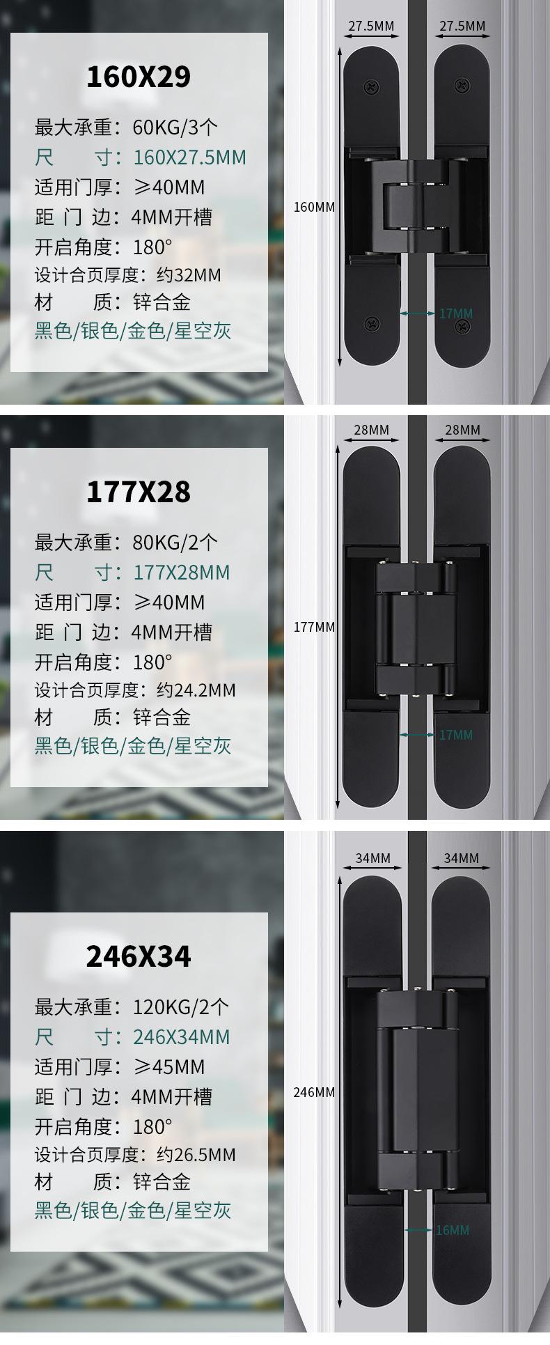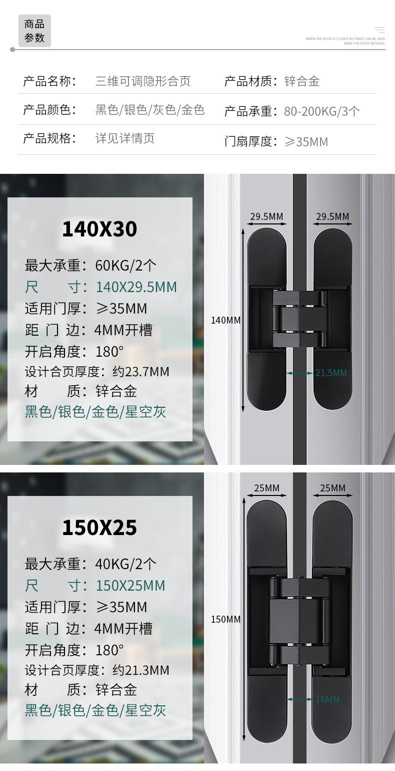 Black 140x30 three-dimensional hinge, Black 150x25 three-dimensional hinge, Black 160x29 three-dimensional hin...