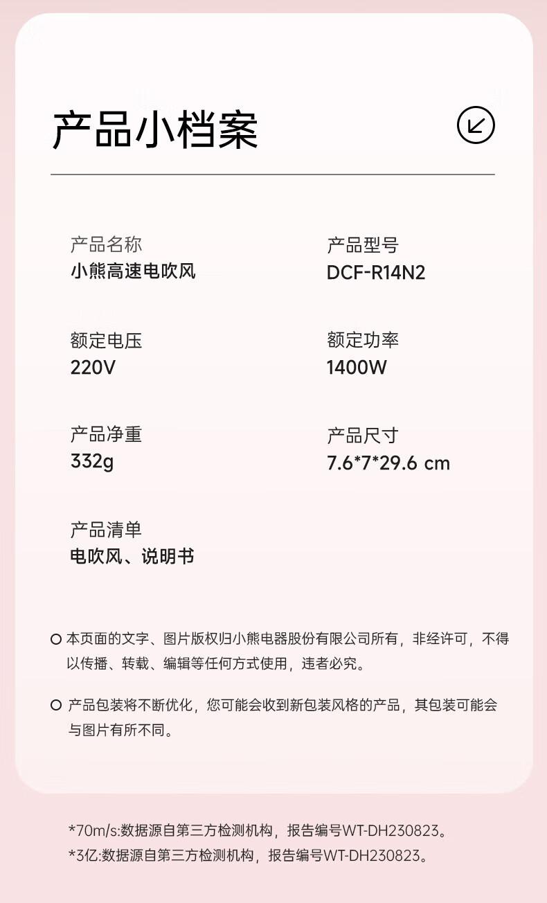 Secadora de Cabello de Alta Velocidad Bear DCF-R14N2 Hueca Sin Aspas Doméstica Tono Claro Iones Negativos Secadora de Cabello 1400W