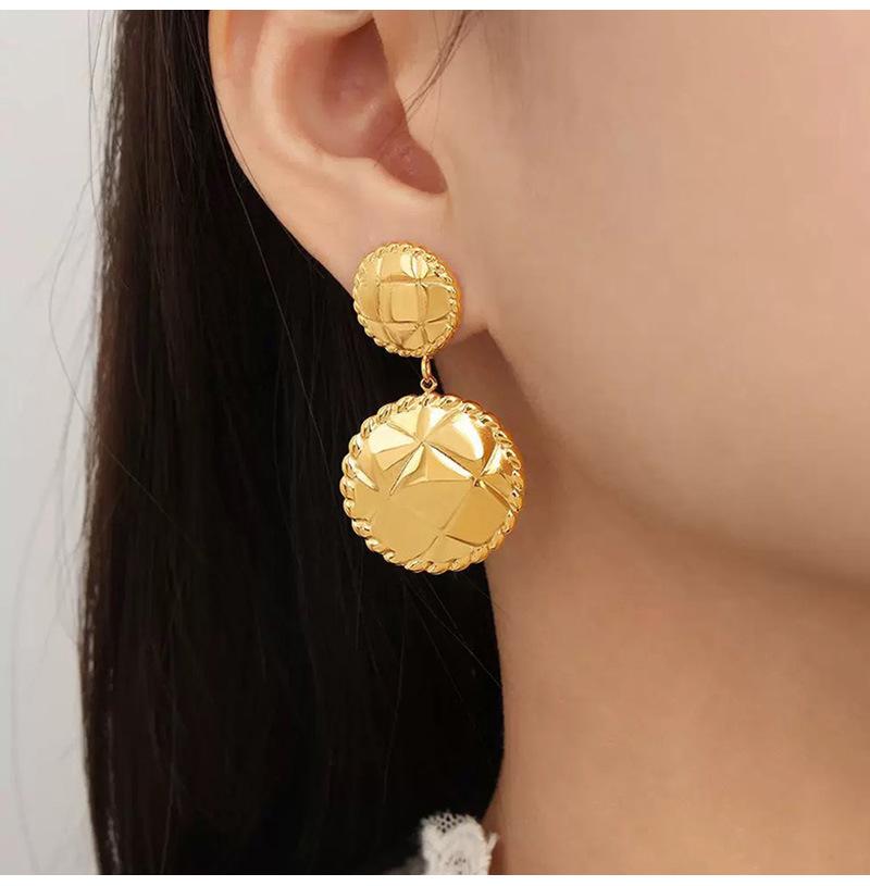 Pendientes de aleación con rayas geométricas redondas de gran sentido transfronterizo, pendientes de moda sencillos estilo INS, pendientes con personalidad europea y americana.
