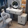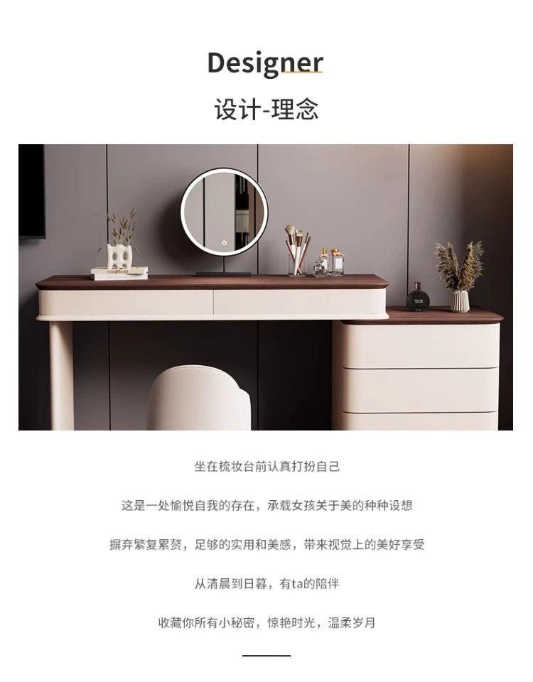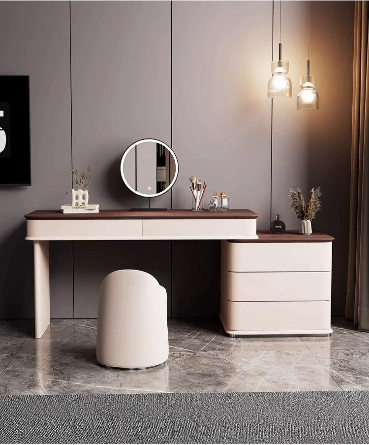 Tocador de lujo ligero con veta de madera, armario de almacenamiento integrado para dormitorio, mesa de maquillaje de madera maciza pura, nuevo 2024, apartamento pequeño simple