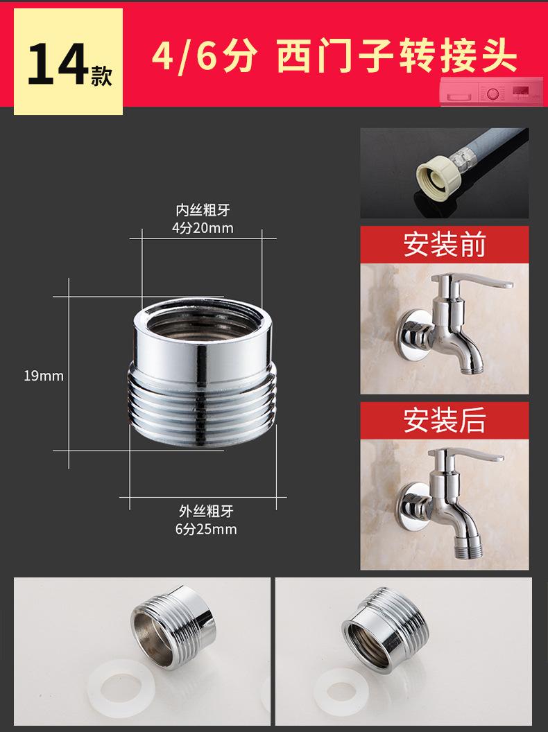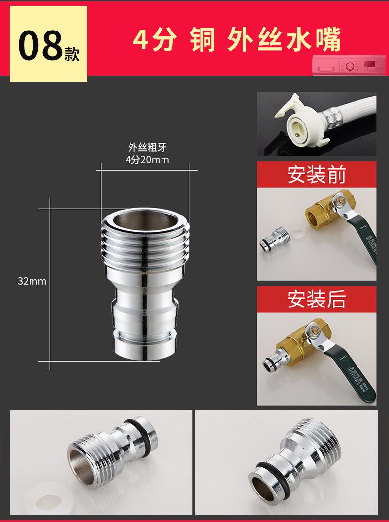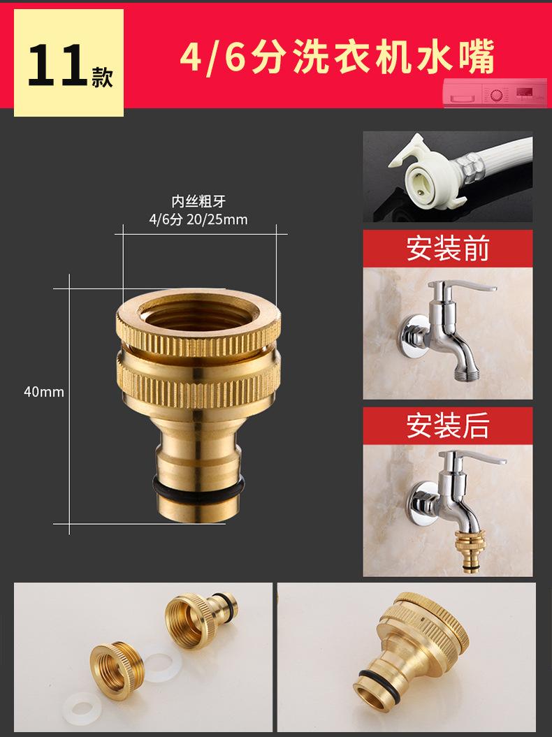 Boquilla de salida de grifo de lavadora de cobre, adaptador universal de 4 a 6 puntos, hebilla de tubo de entrada, conector de parada de agua para lavado de automóviles