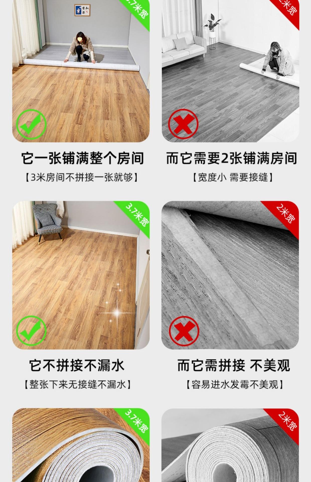 3.7 m de ancho piso de cuero cemento para piso extendido directamente hogar engrosado resistente al desgaste 3 m tapete de PVC para piso pegatinas para piso