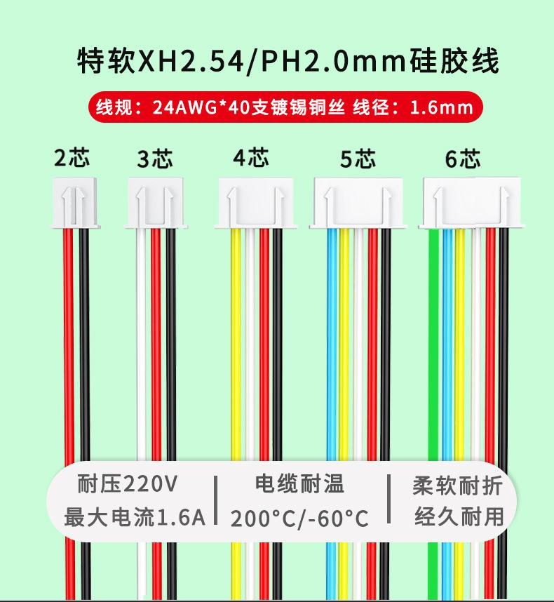 Cable de silicona suave de alta calidad Cable terminal XH2.54 2/3/4/5/6p eléctrico extremo PH2.0 conexión conector hembra 2.54/2.0