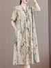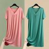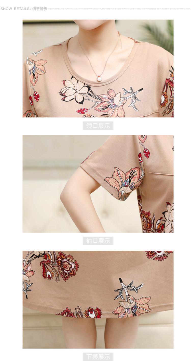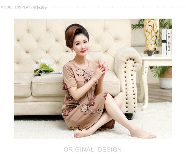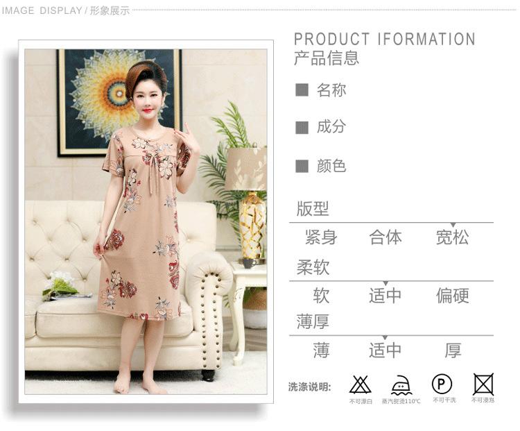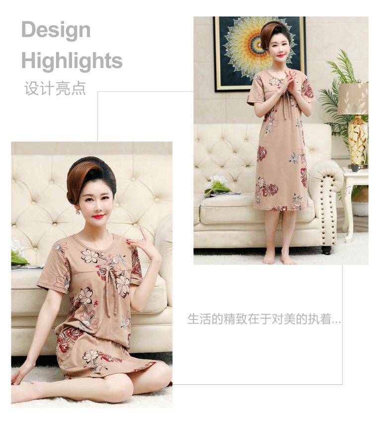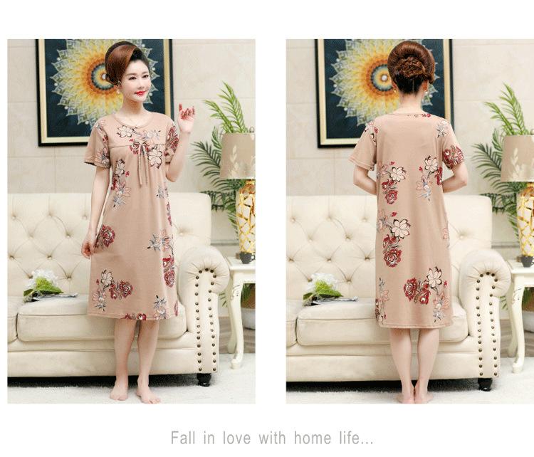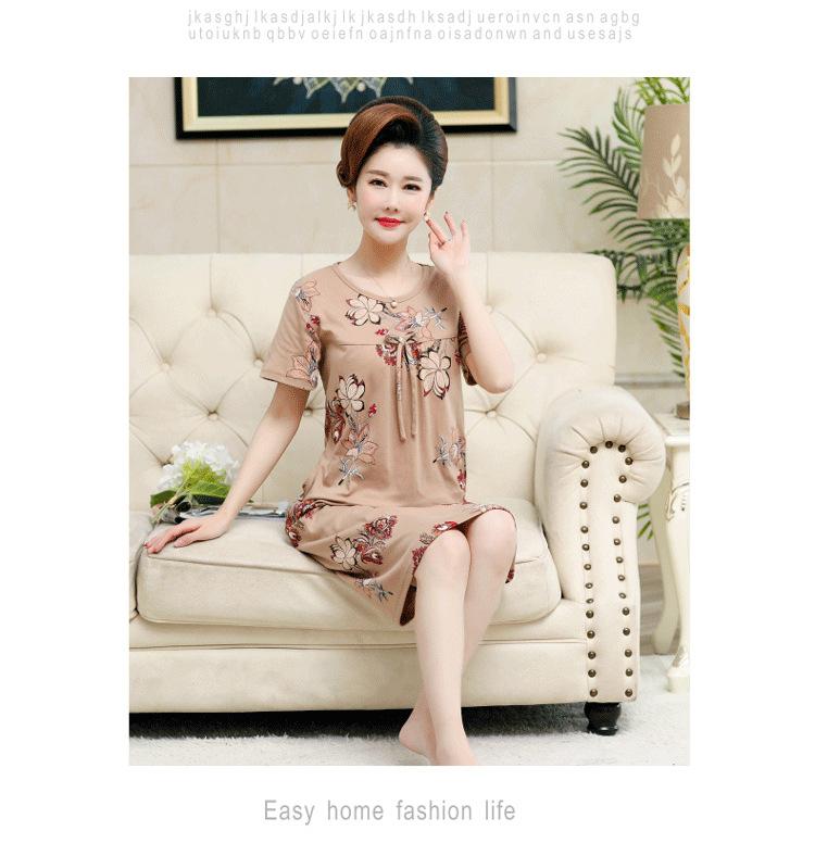 Camisón de verano fino de manga corta, holgado, para madres de mediana edad, talla extra grande, para mujer, para estar en casa, vestido de longitud media