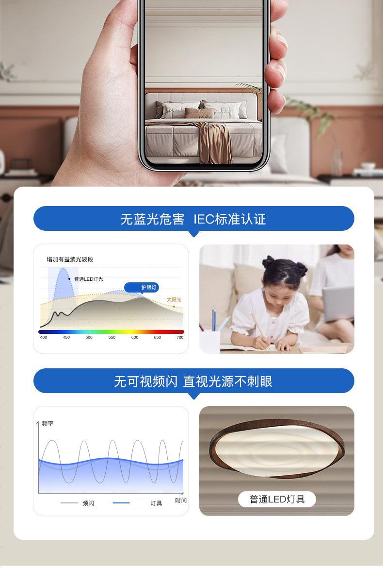 Lámpara de techo de dormitorio antigua, lámparas de viento color crema, nueva lámpara moderna, simple, de espectro completo, con protección ocular para habitación, lámpara de estudio