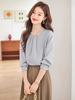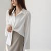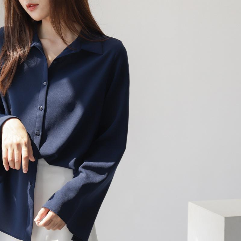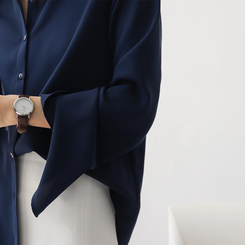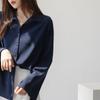 Camisa de Chifón de Manga Larga a la Moda para Mujer Primavera y Verano 2025 Nuevo Estilo Top Holgado Perezoso Manga Campana Color Puro Camisa Blanca