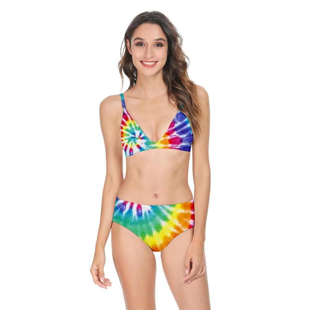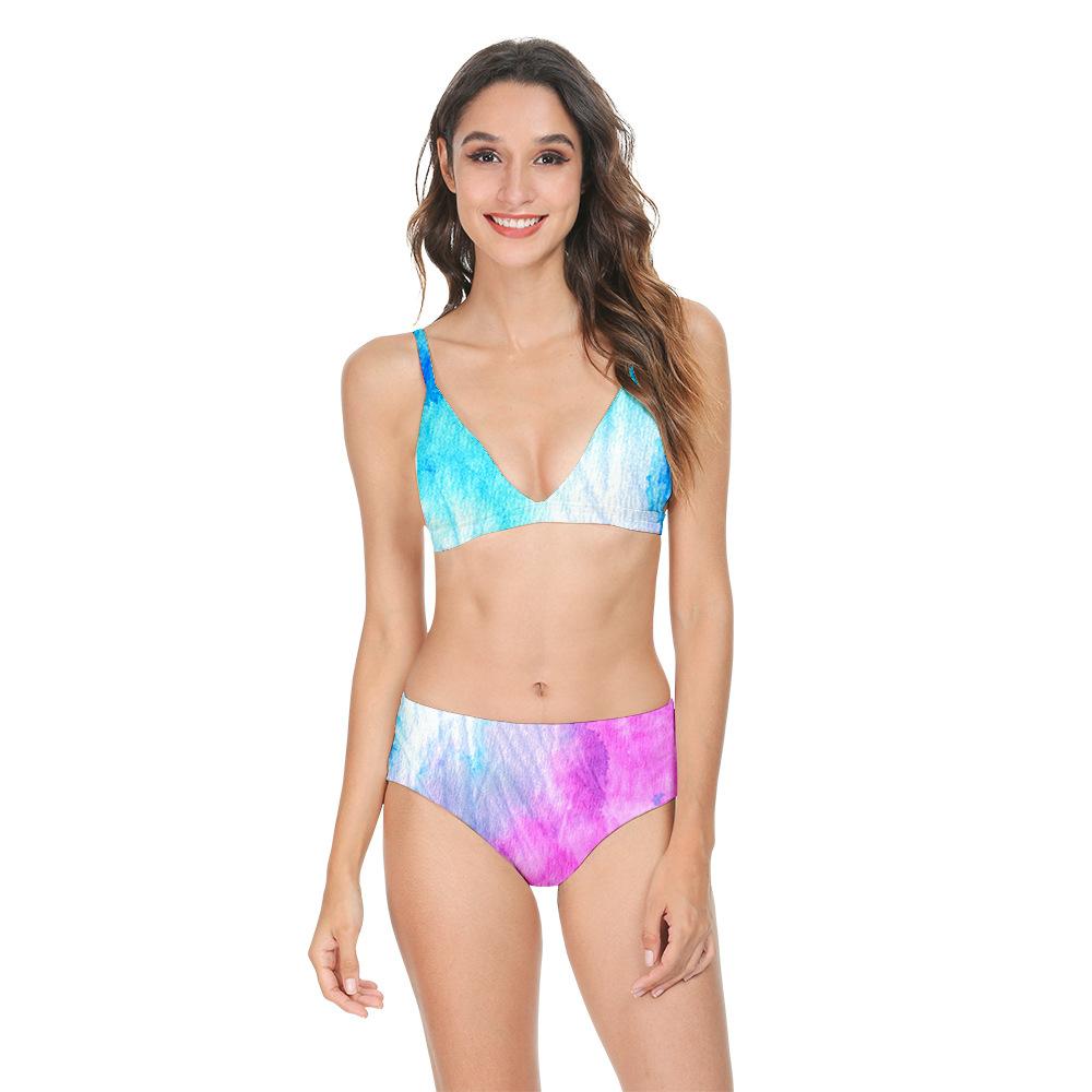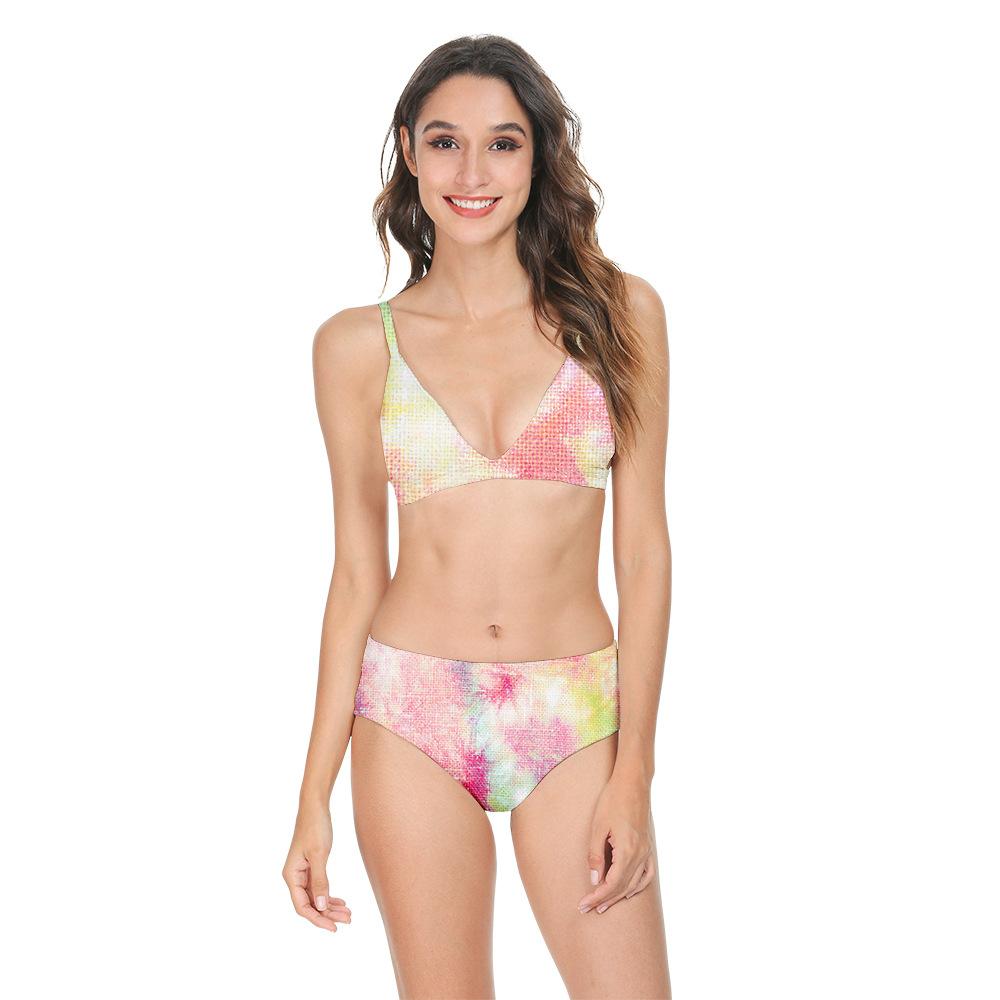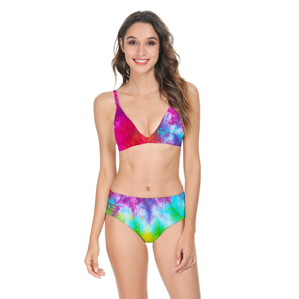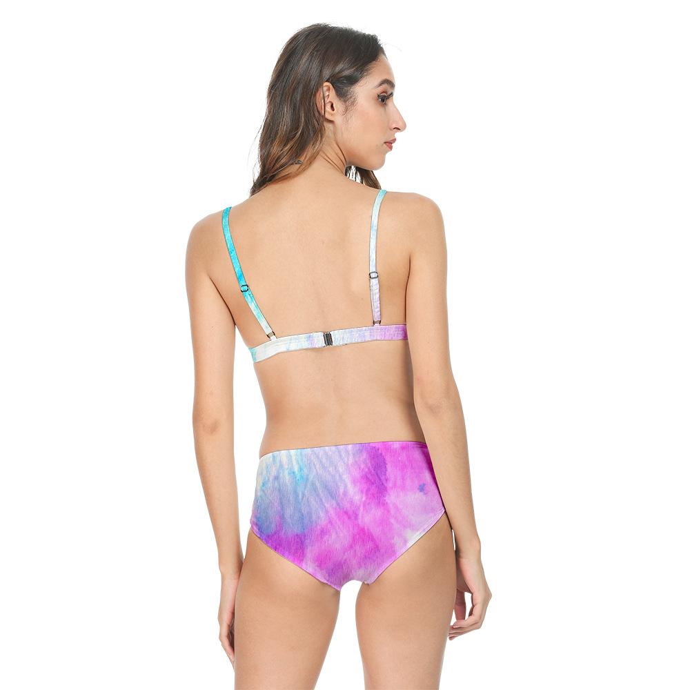 Nuevo bikini de tres puntos de verano transfronterizo de Amazon con estampado tie-dye, traje de baño sexy dividido