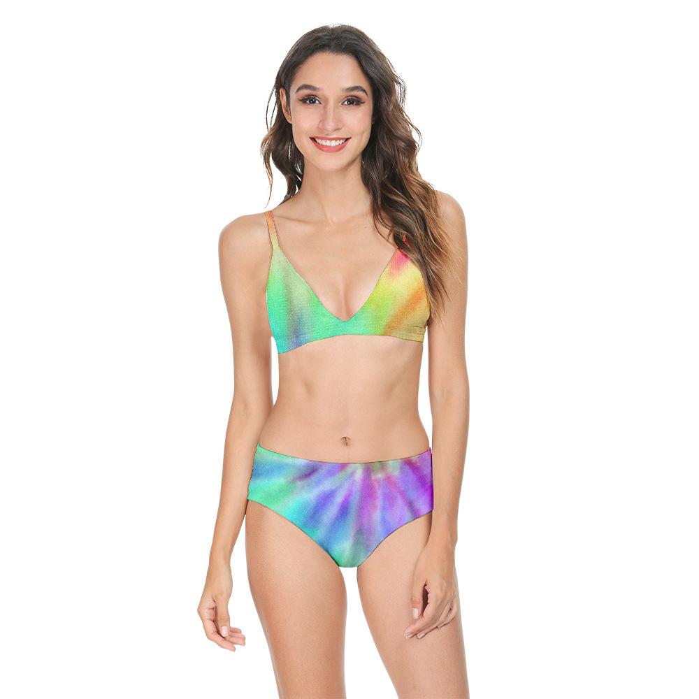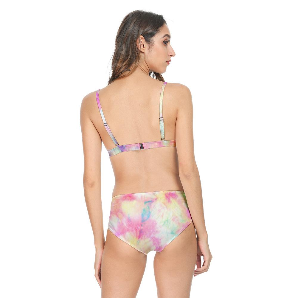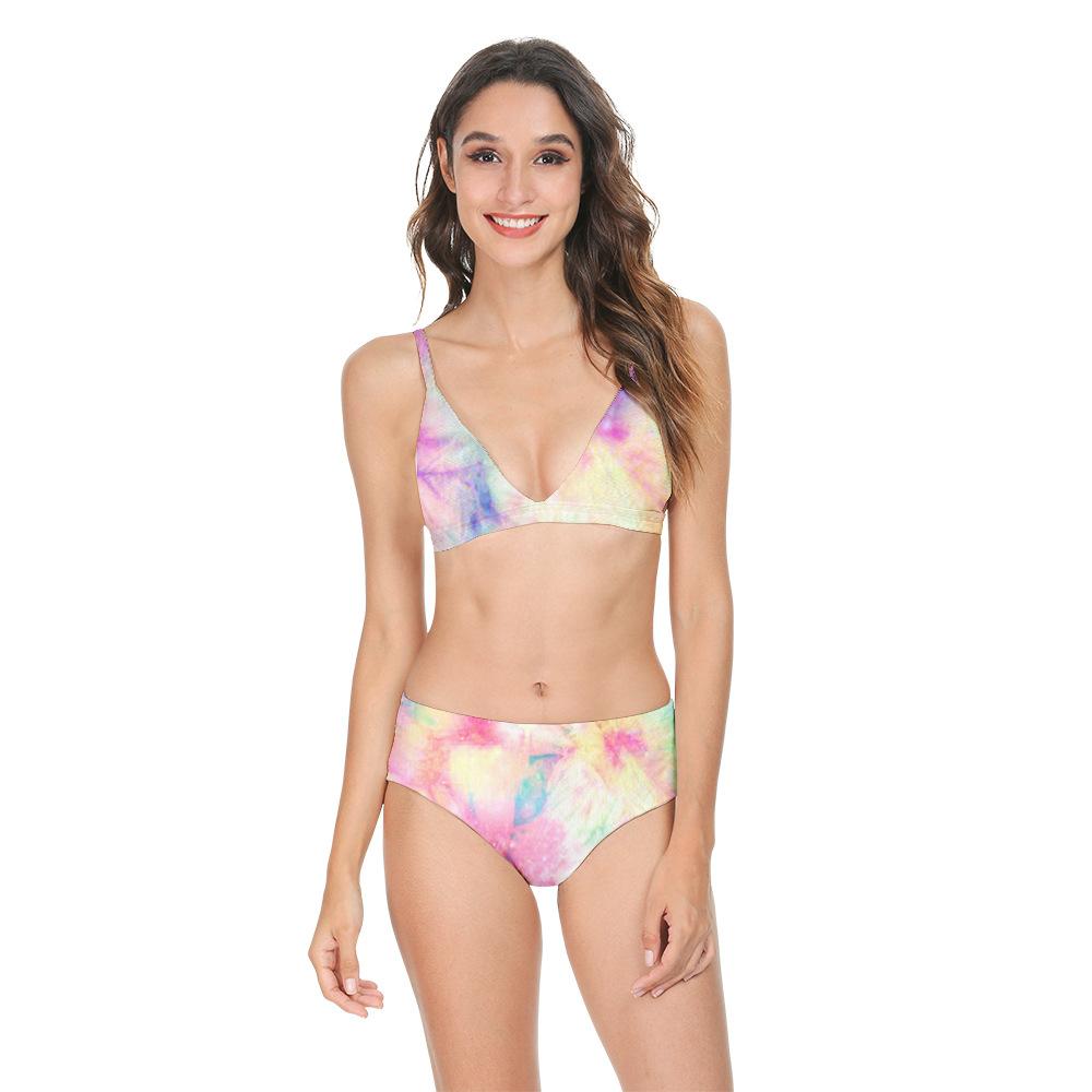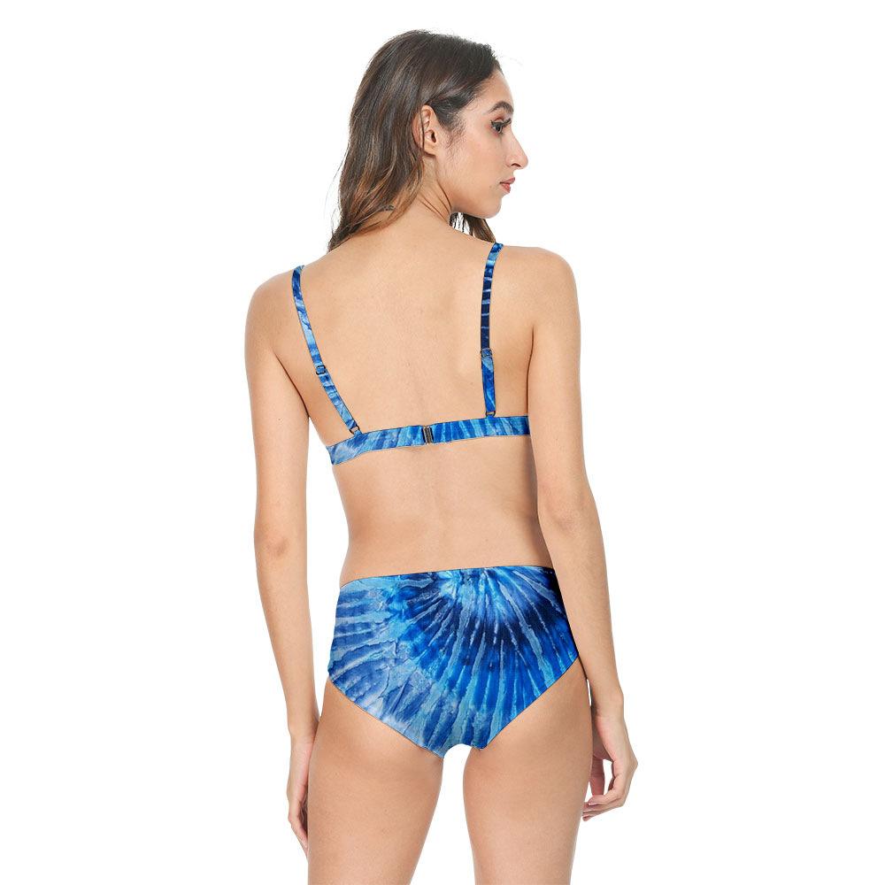 Nuevo bikini de tres puntos de verano transfronterizo de Amazon con estampado tie-dye, traje de baño sexy dividido