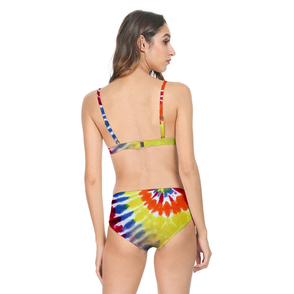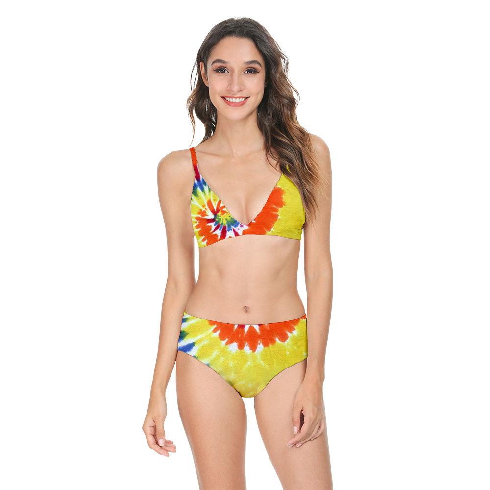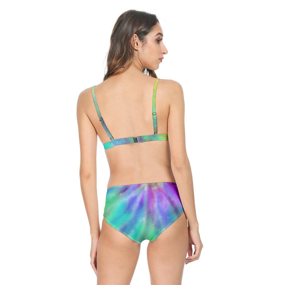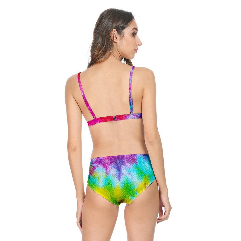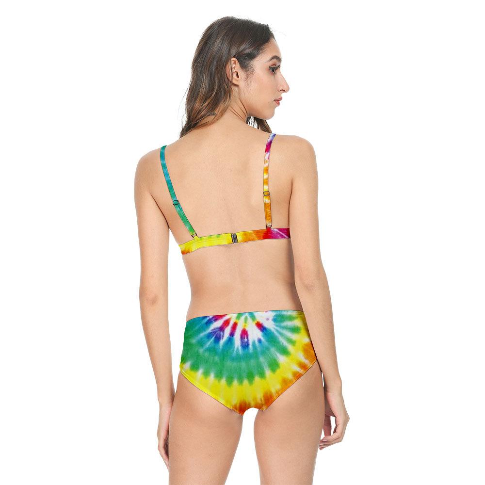 Nuevo bikini de tres puntos de verano transfronterizo de Amazon con estampado tie-dye, traje de baño sexy dividido