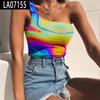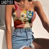 Europeo y Americano Nuevo Amazon Comercio Exterior Impresión a Color 3D Digital Sexy Exterior Hombro Camiseta sin Mangas