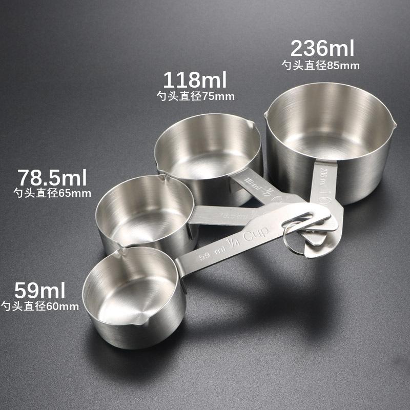 Cuchara Medidora de Acero Inoxidable para Hornear Juego de Cuatro Piezas Taza Medidora Herramientas de Cocina Comercial alrededor de 384g Suministros para Tienda de Té con Leche Producto Nuevo