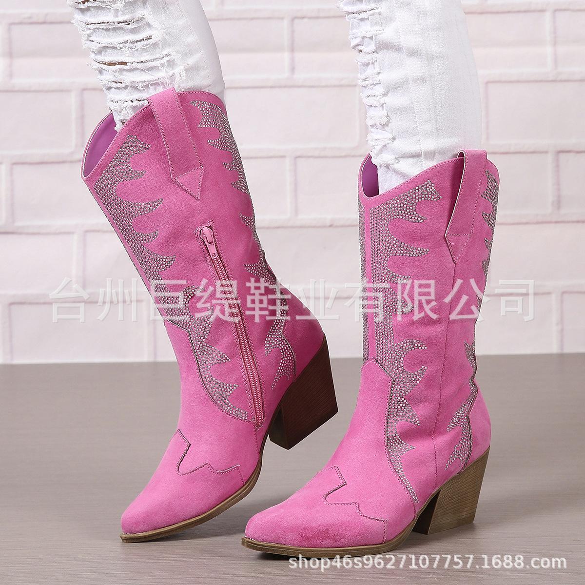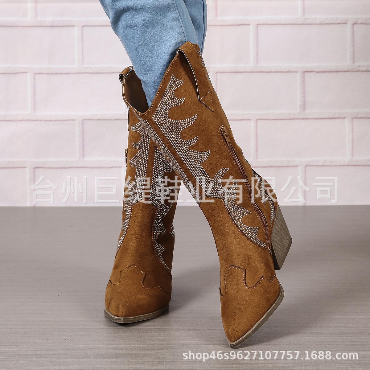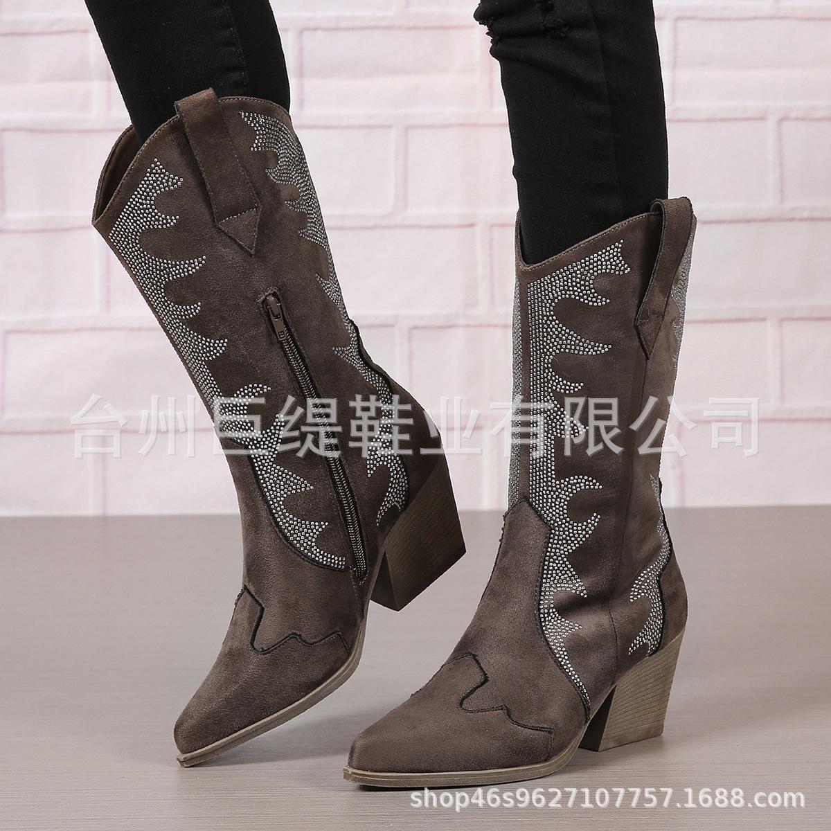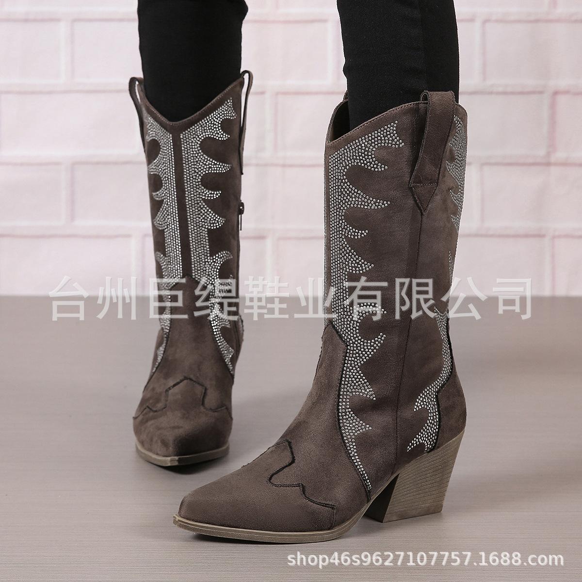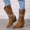 Botas largas de talla grande de comercio exterior nuevas de otoño e invierno de 2023 WISH Amazon, botas de cuero de media pantorrilla para mujer europeas y americanas