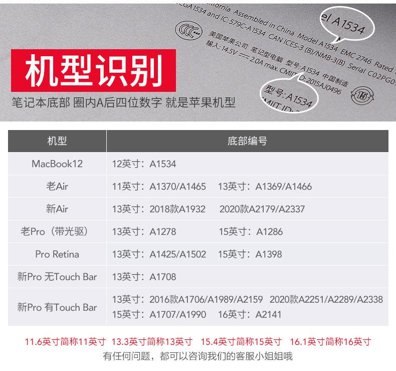 11air(A1465/1370), 12retina(A1534), 13.3air(A1466/A1369), 13pro retina(A1425/A1502), 15pro(A1286), 15pro retin...