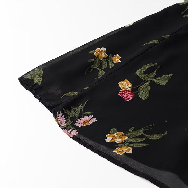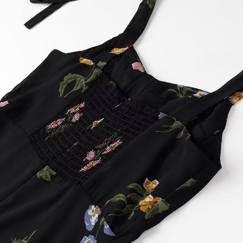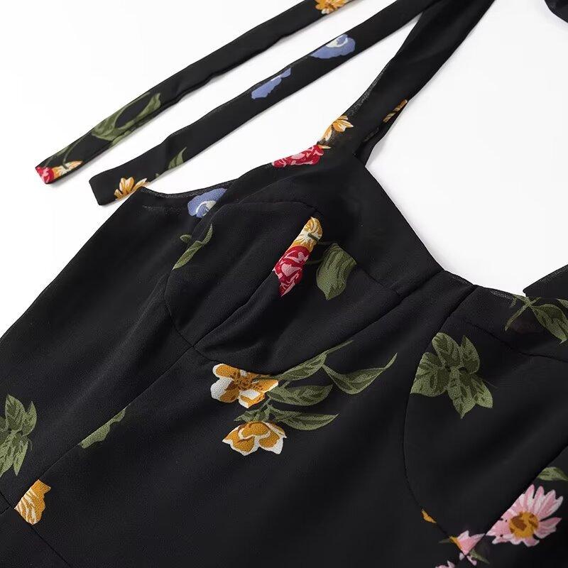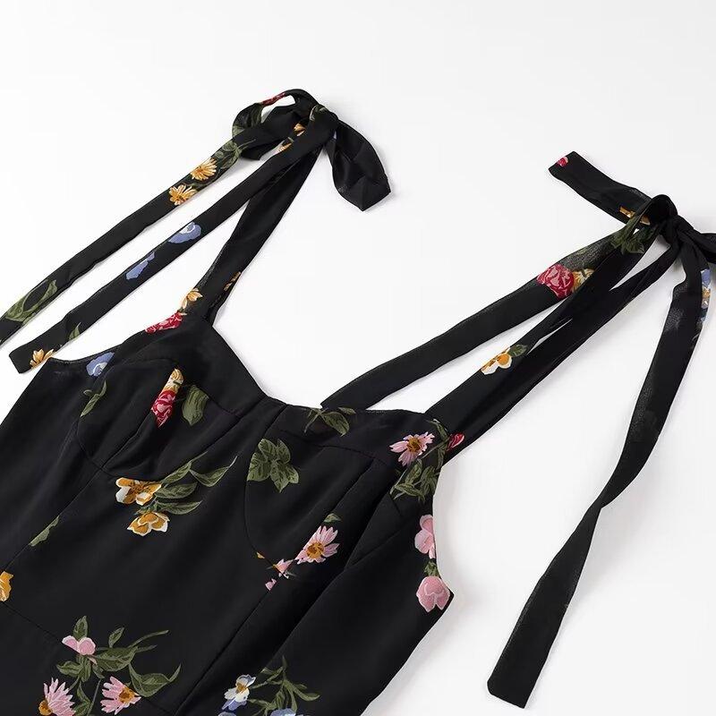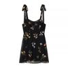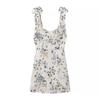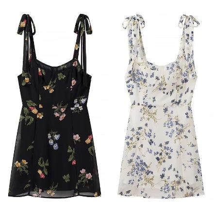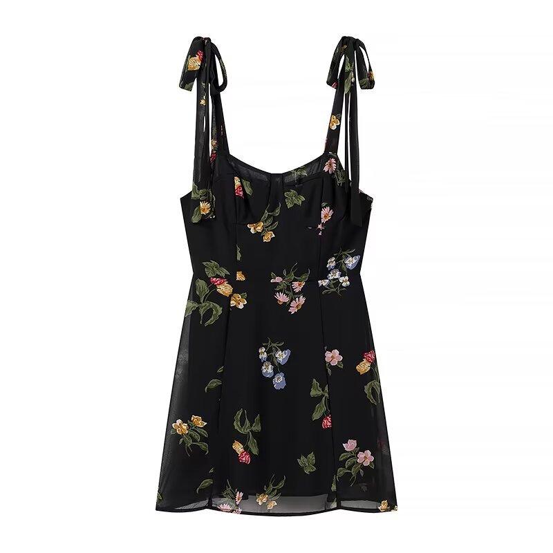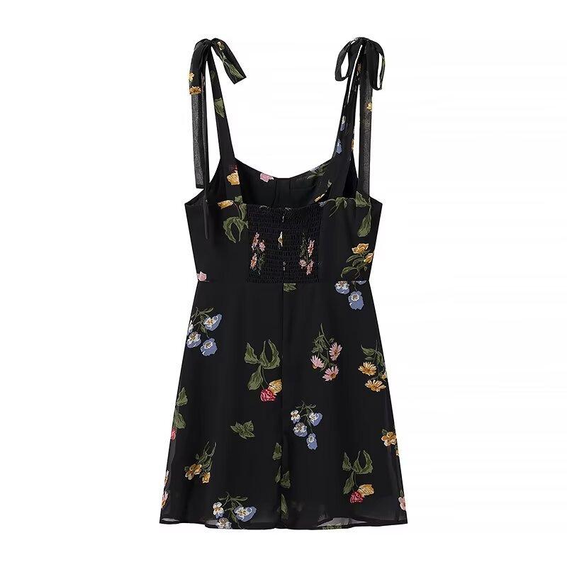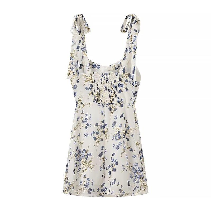 Vestido corto con cordones y estampado de tirantes anchos para mujer, estilo europeo y americano, de verano 2024