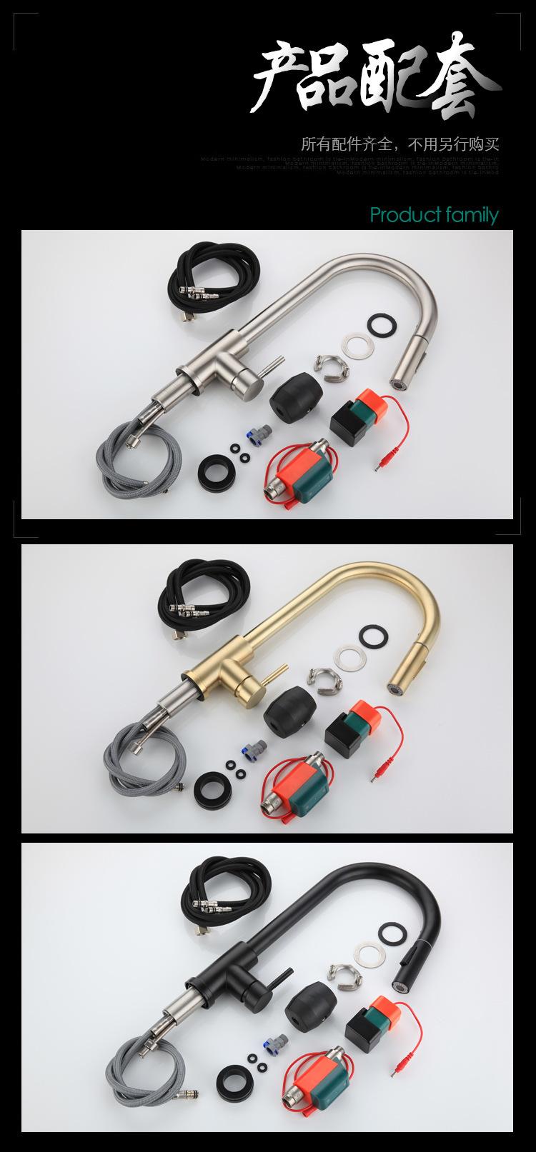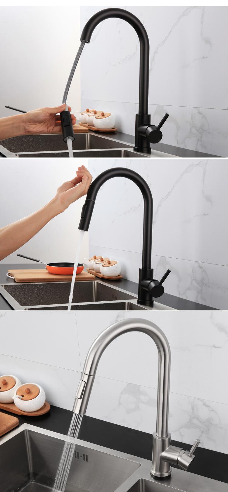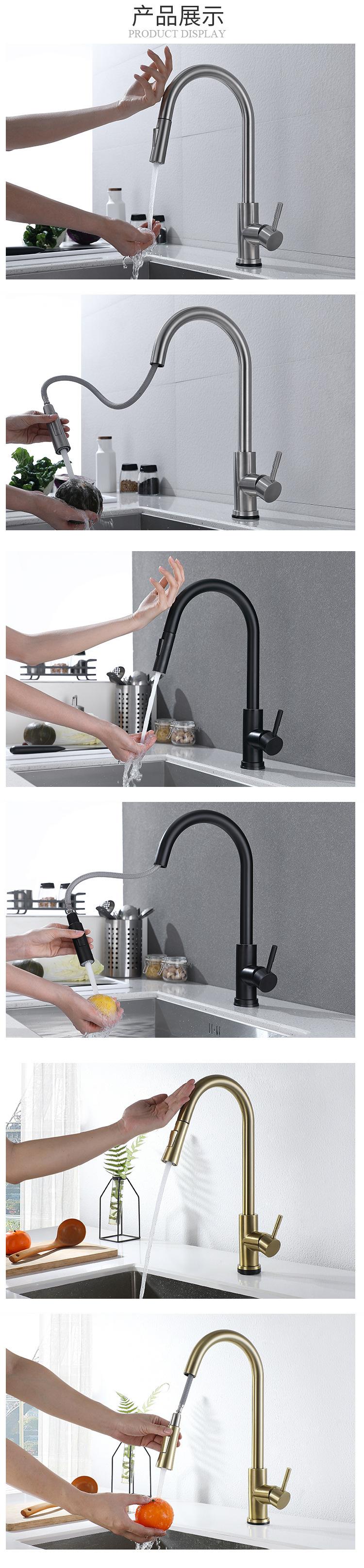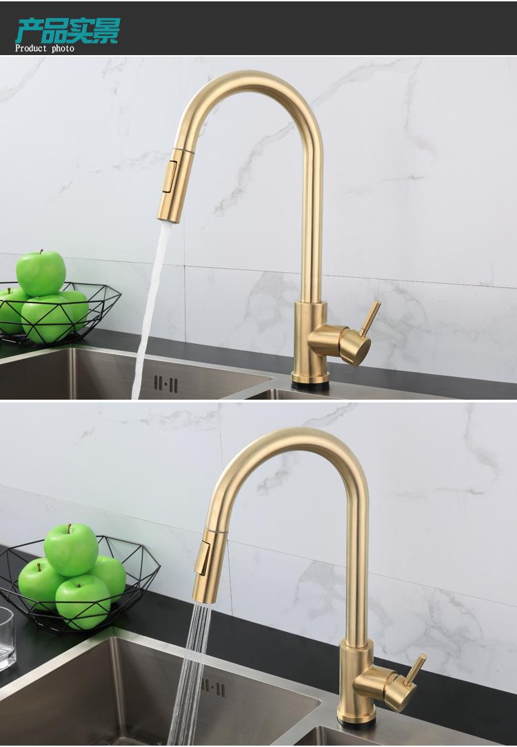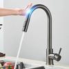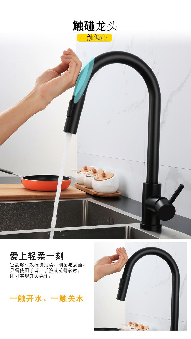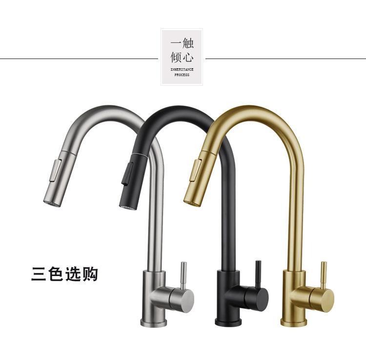 Grifo de cocina extraíble con inducción táctil inteligente de acero inoxidable 304 transfronterizo, grifo para fregadero de verduras con agua caliente y fría