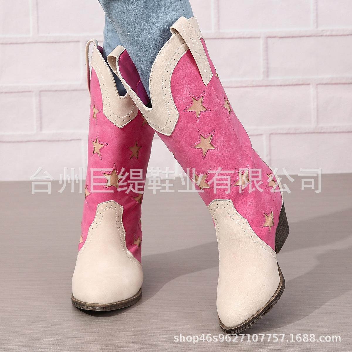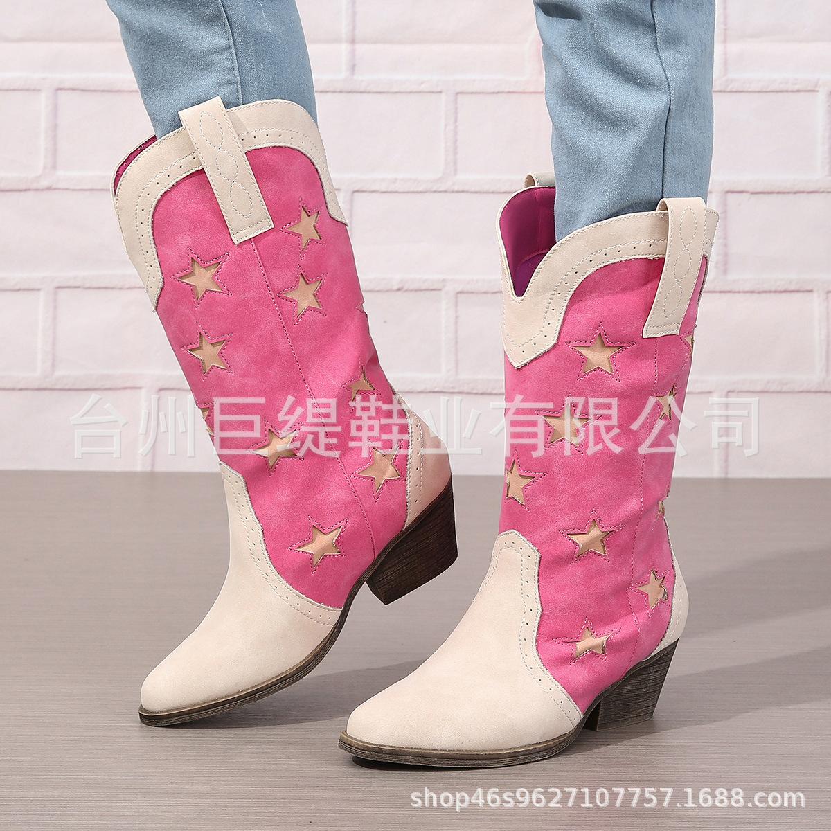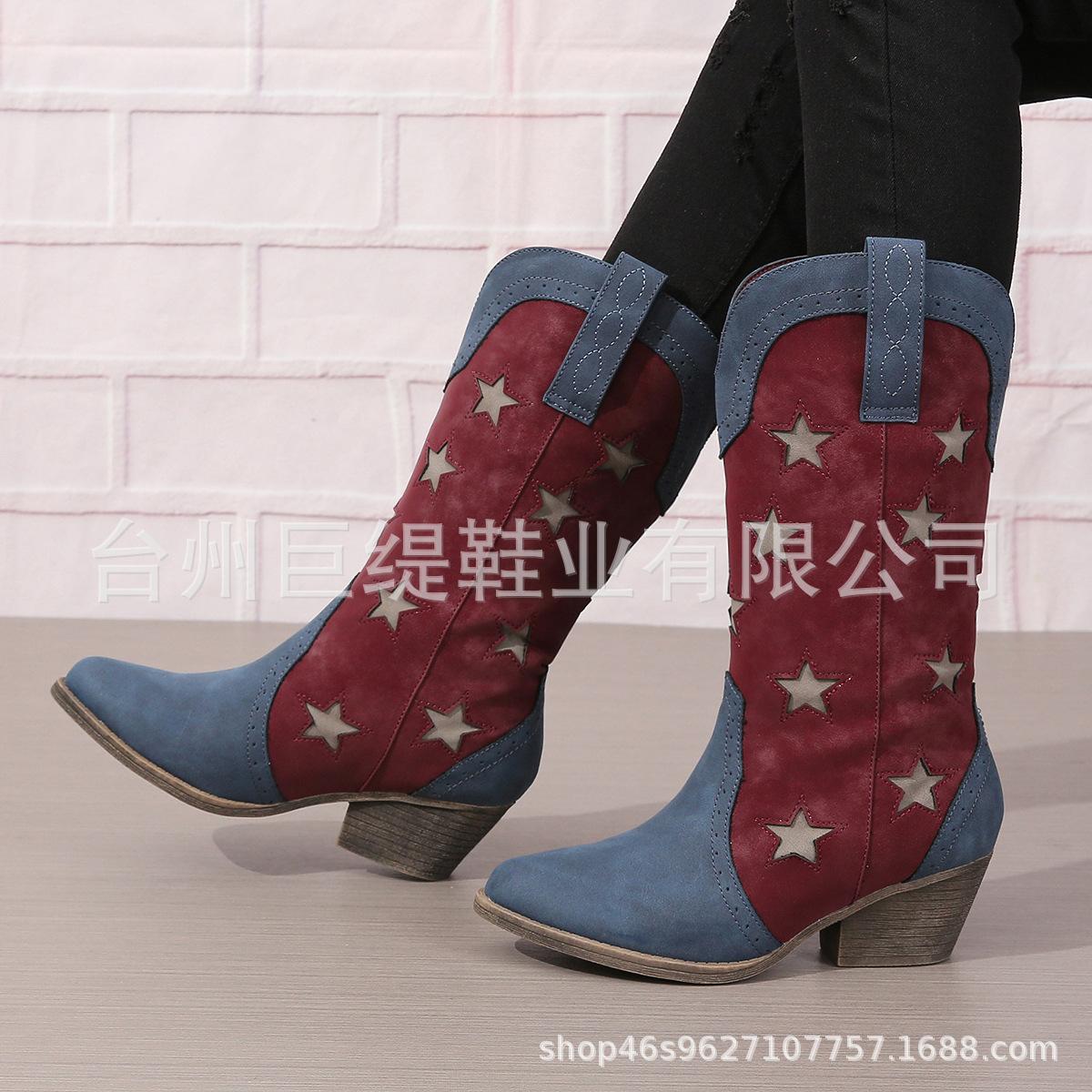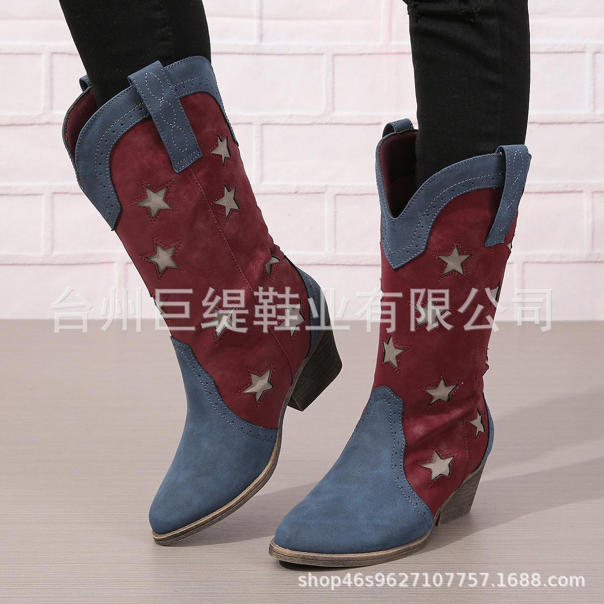 Botas largas de talla grande de comercio exterior nuevas de otoño e invierno de 2023 WISH Amazon, botas de cuero de media pantorrilla para mujer europeas y americanas