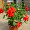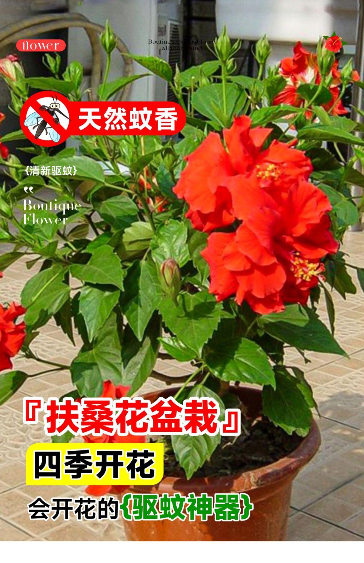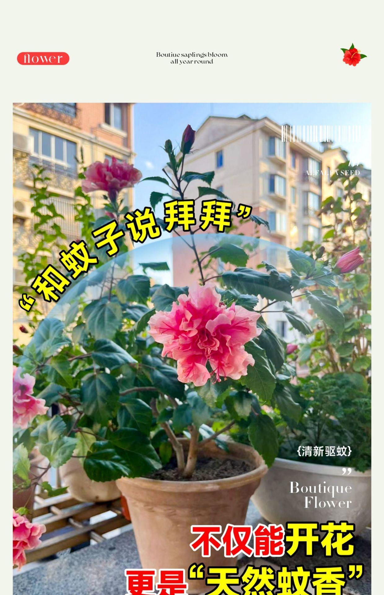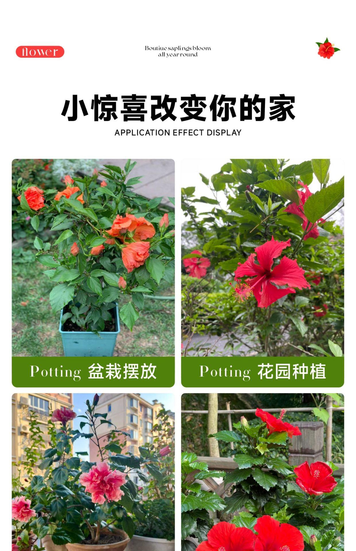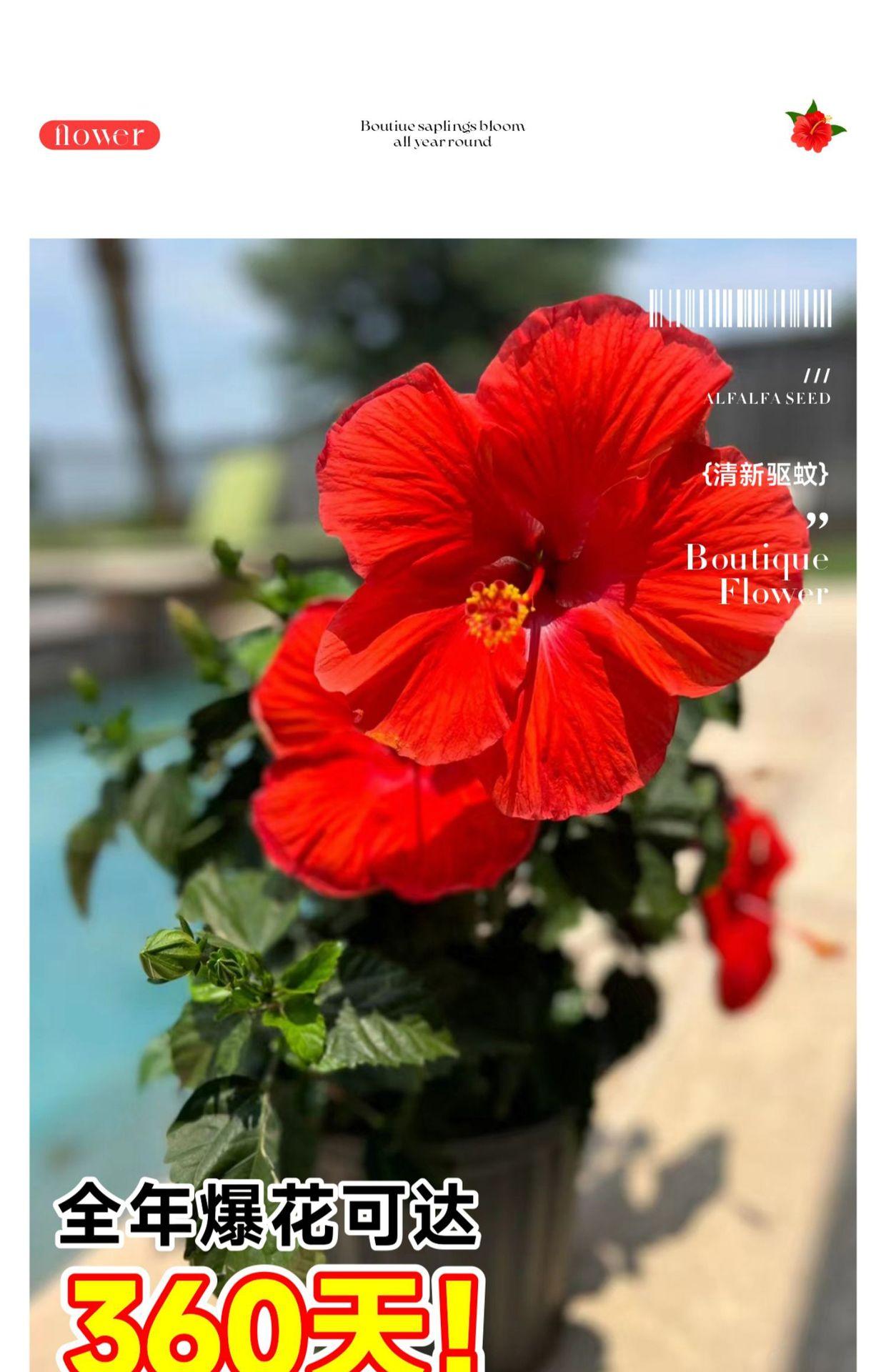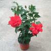 Flor de hibisco en maceta de doble pétalo con capullos, peonía roja Zhu Jin, para balcón, flores de cuatro estaciones, para interior.