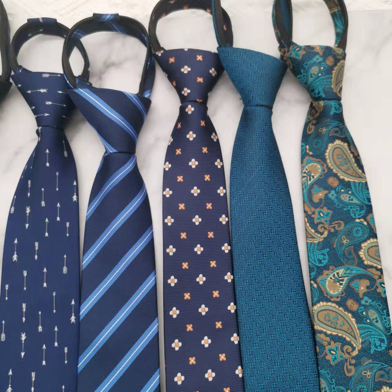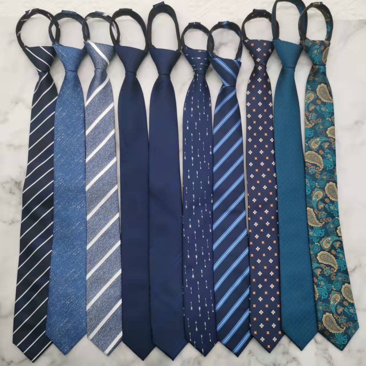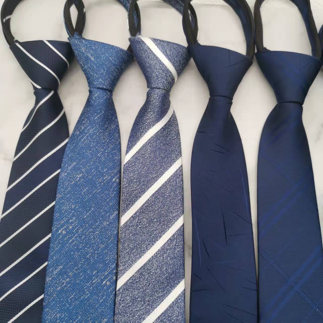 Corbata Formal para Hombre Estilo Cremallera Boda Novio Hombre Negocios Gratis Azul Atada a Mano Traje Perezoso Sin Nudo Trendy