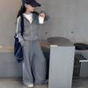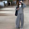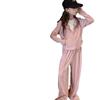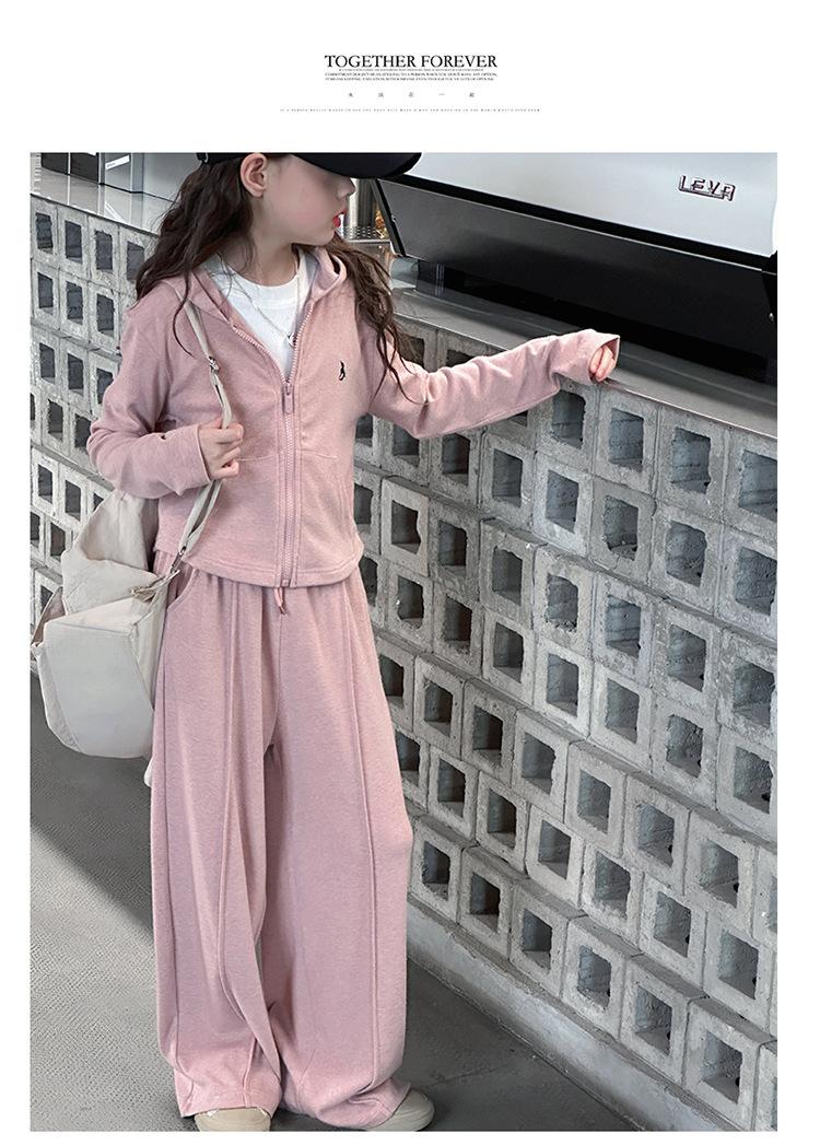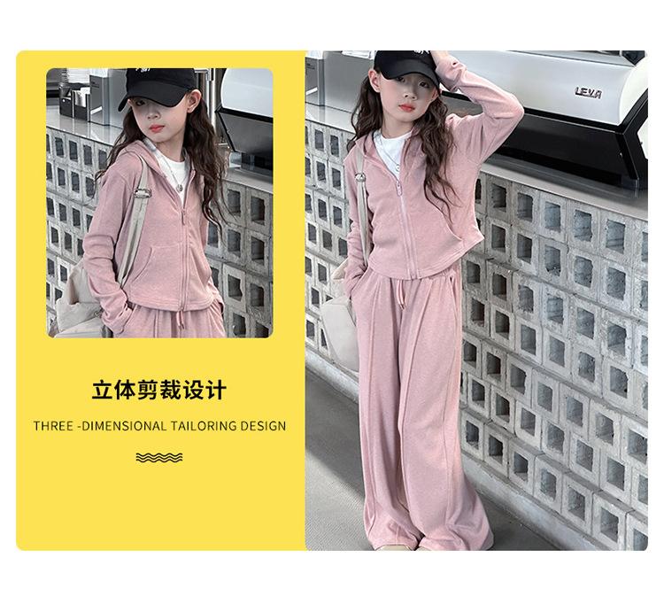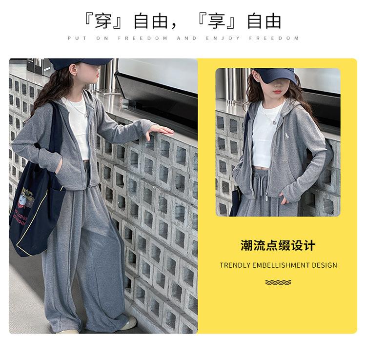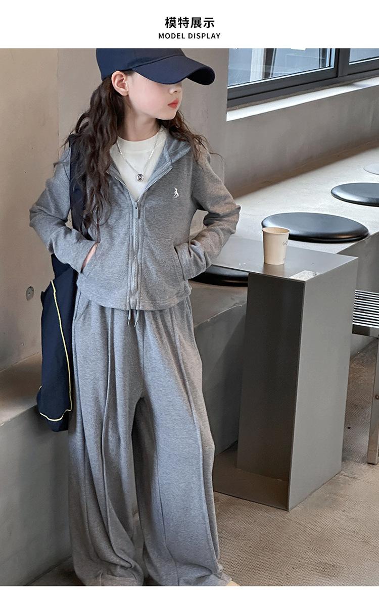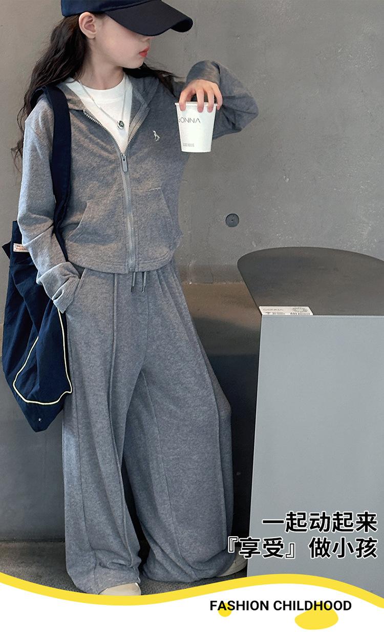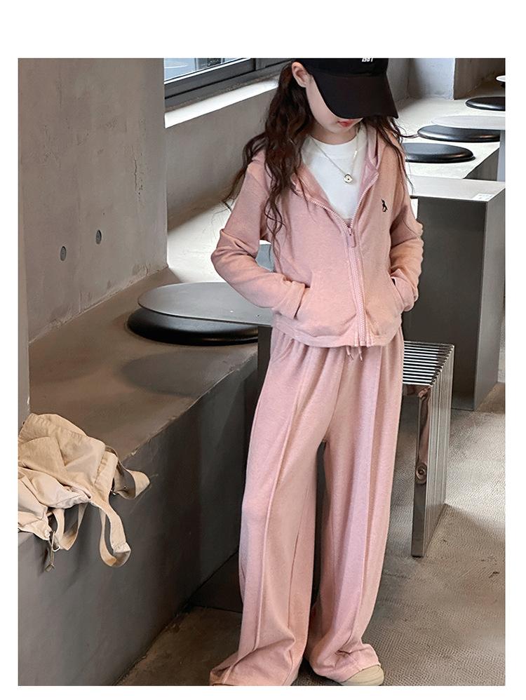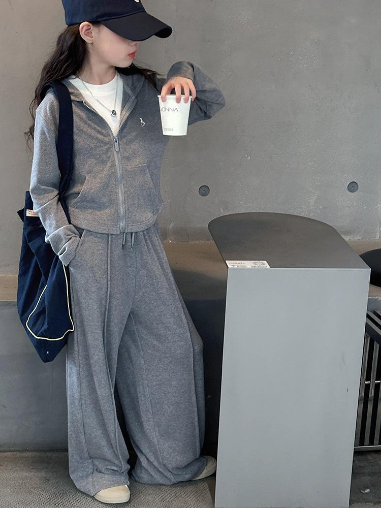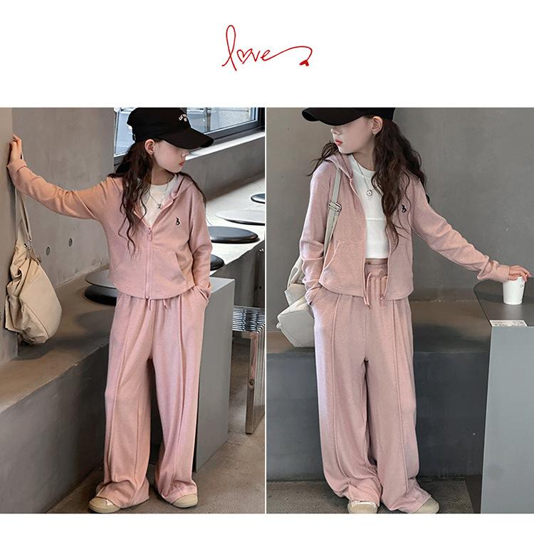 Compra Conjunto de dos piezas de ropa deportiva de manga larga con cárdigan, pantalones anchos y colores sólidos de estilo coreano para niñas, otoño e invierno, nuevo modelo al por mayor en Joom.pro