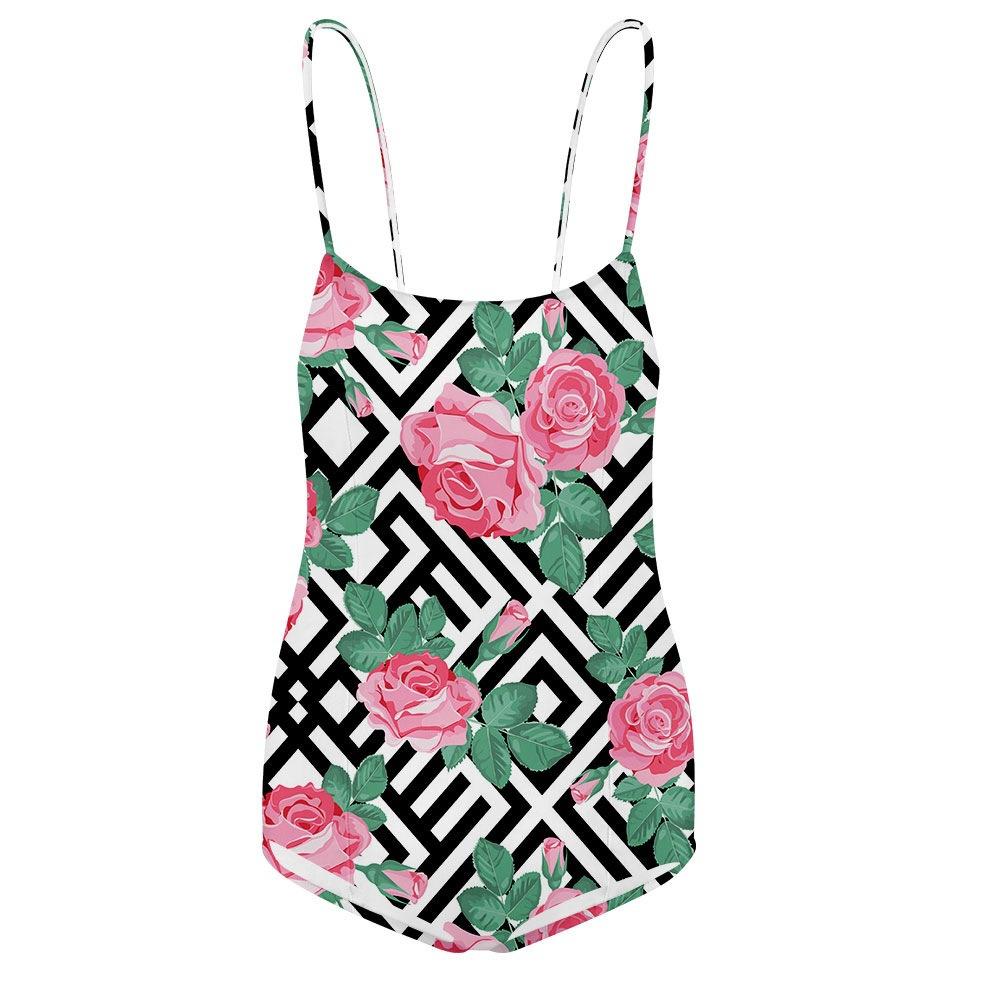 Compra Traje de baño bikini sexy de verano transfronterizo Amazon patrón de textura de rosa sin espalda al por mayor en Joom.pro