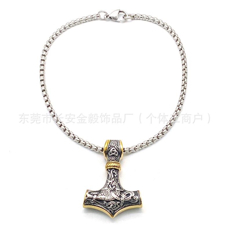 Colgante de acero inoxidable con forma de martillo de Thor, estilo vikingo nórdico vintage, para hombre, estilo europeo y americano, muy vendido en el extranjero.