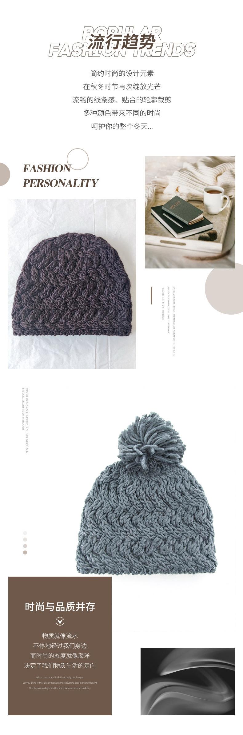 Amazon Transfronterizo Gris Hecho a Mano DIY Exportación Sombrero de Lana para Mujer Cabeza Grande Sombrero Grueso Sombrero para el Frío Sombrero de Punto para Hombre