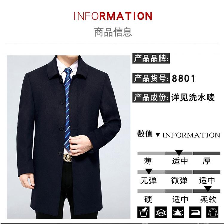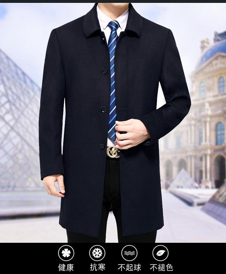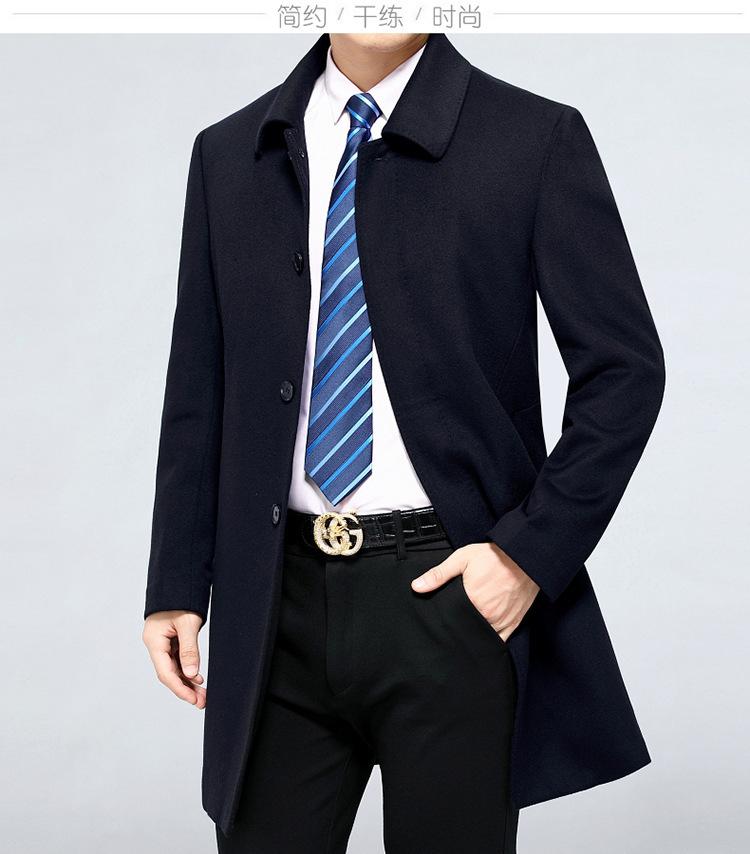 Forro de Lana y Plumón Papá 2024 Abrigo Abrigo de Cachemira Abrigo de Lana de Largo Medio para Hombre Nuevo Abrigo de Lana Pura