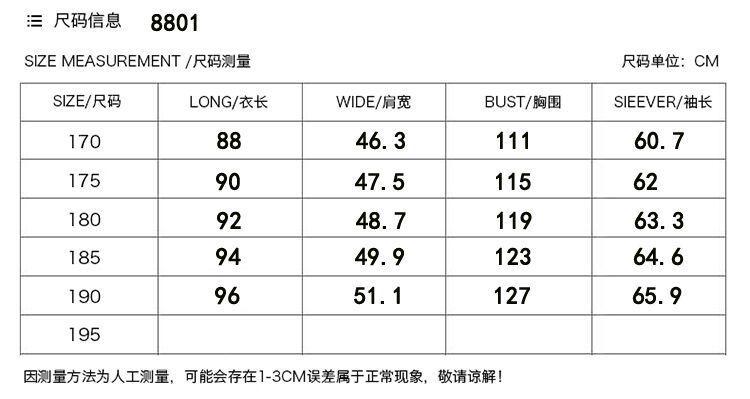 170/88A, 175/92A, 180/96A, 185/100A, 190/104A, 195/108A