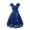 Vestido de Noche Empalmado Cuello en V Amazon 2025 Nuevo Atado Dobladillo Amplio Corto Vestido de Encaje para Cumpleaños para Mujeres
