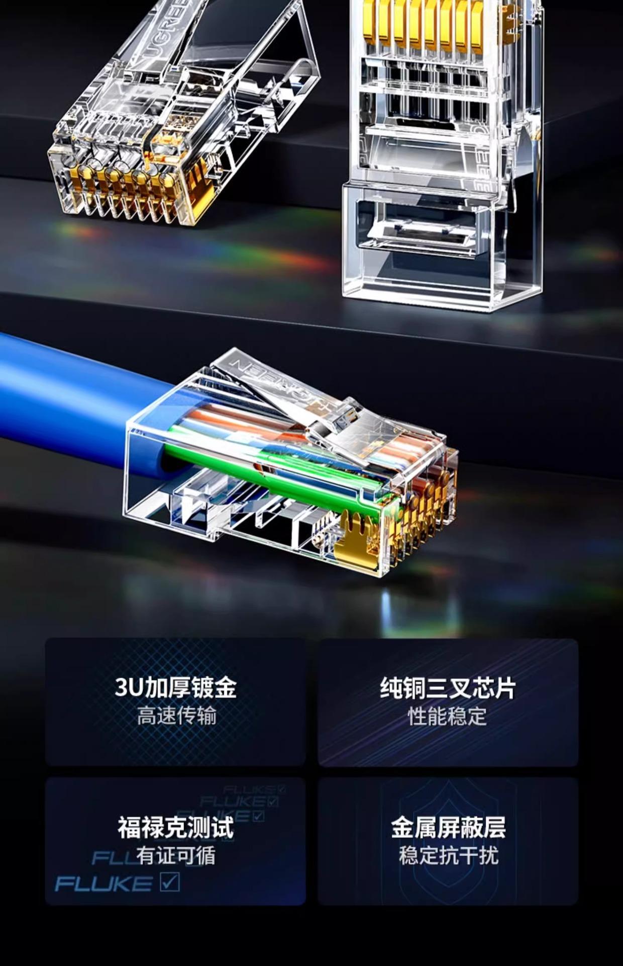 Conector de Red Rj45 Cable de Red Blindado Gigabit Categoría 6, Categoría 5, Categoría 7, Cabeza de Cristal
