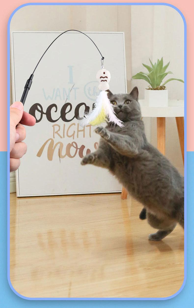 Juguete para gatos, palo de pesca para gatos, campana giratoria de plumas para gatos, palo para gatos, suministros para mascotas ##