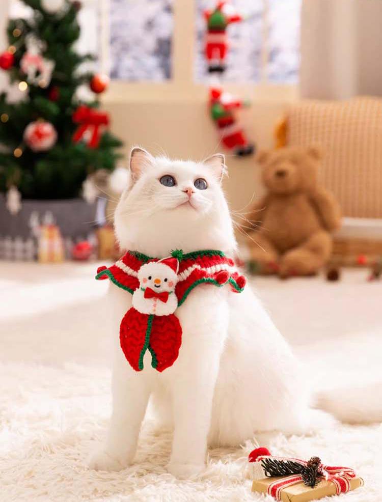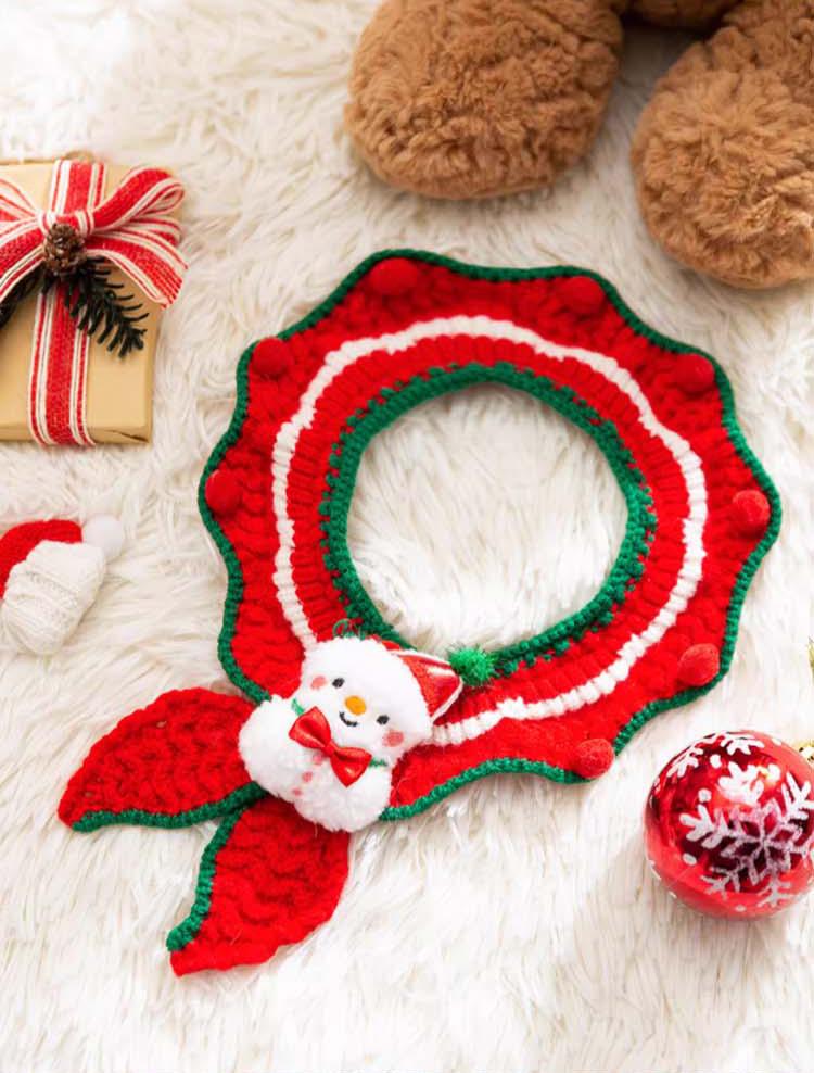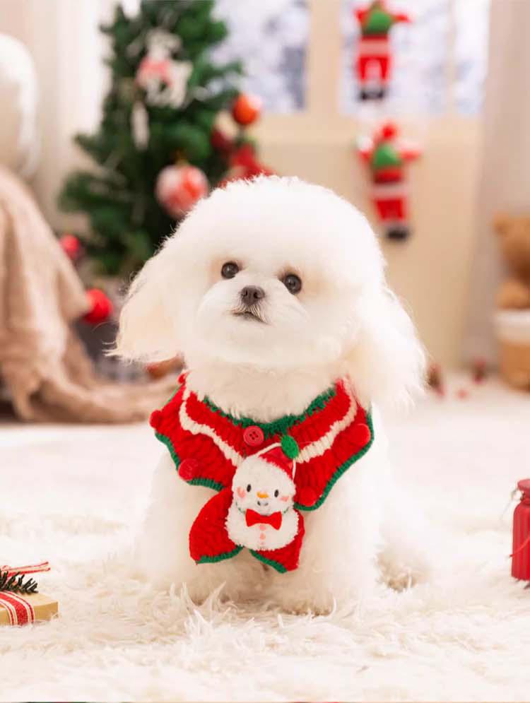 Otoño e Invierno Perro Perro Pequeño Teddy Navidad Muñeco de Nieve Cuello Tejido Bufanda de Gato Año Nuevo Mascota Toalla Triangular