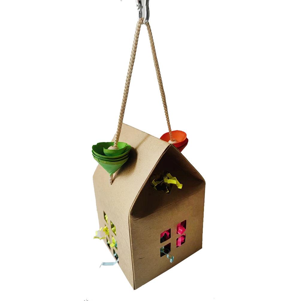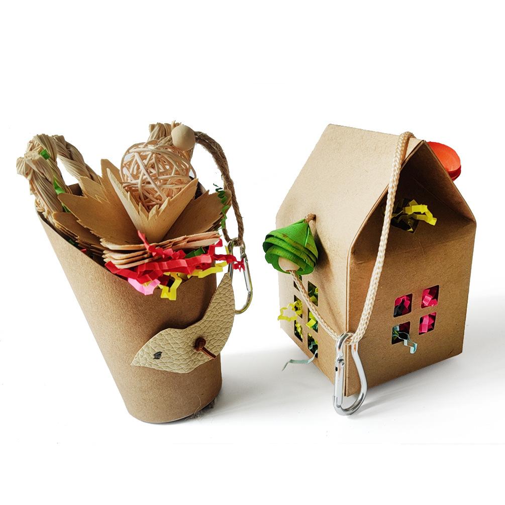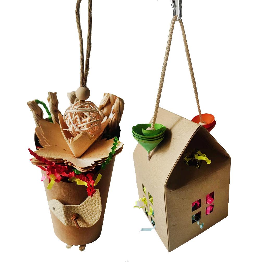Juguete de pájaro loro, tubo de forrajeo de papel, madera, flor, bola de ratán, papel, seda, alivio de picaduras, fabricantes al por mayor
