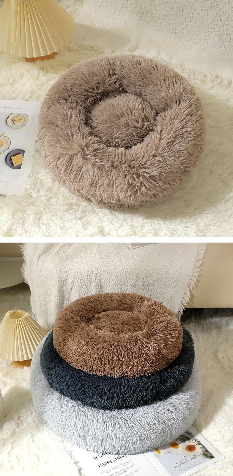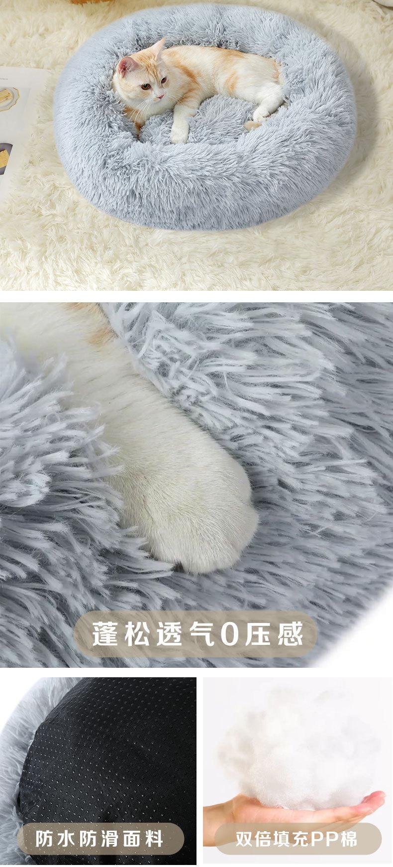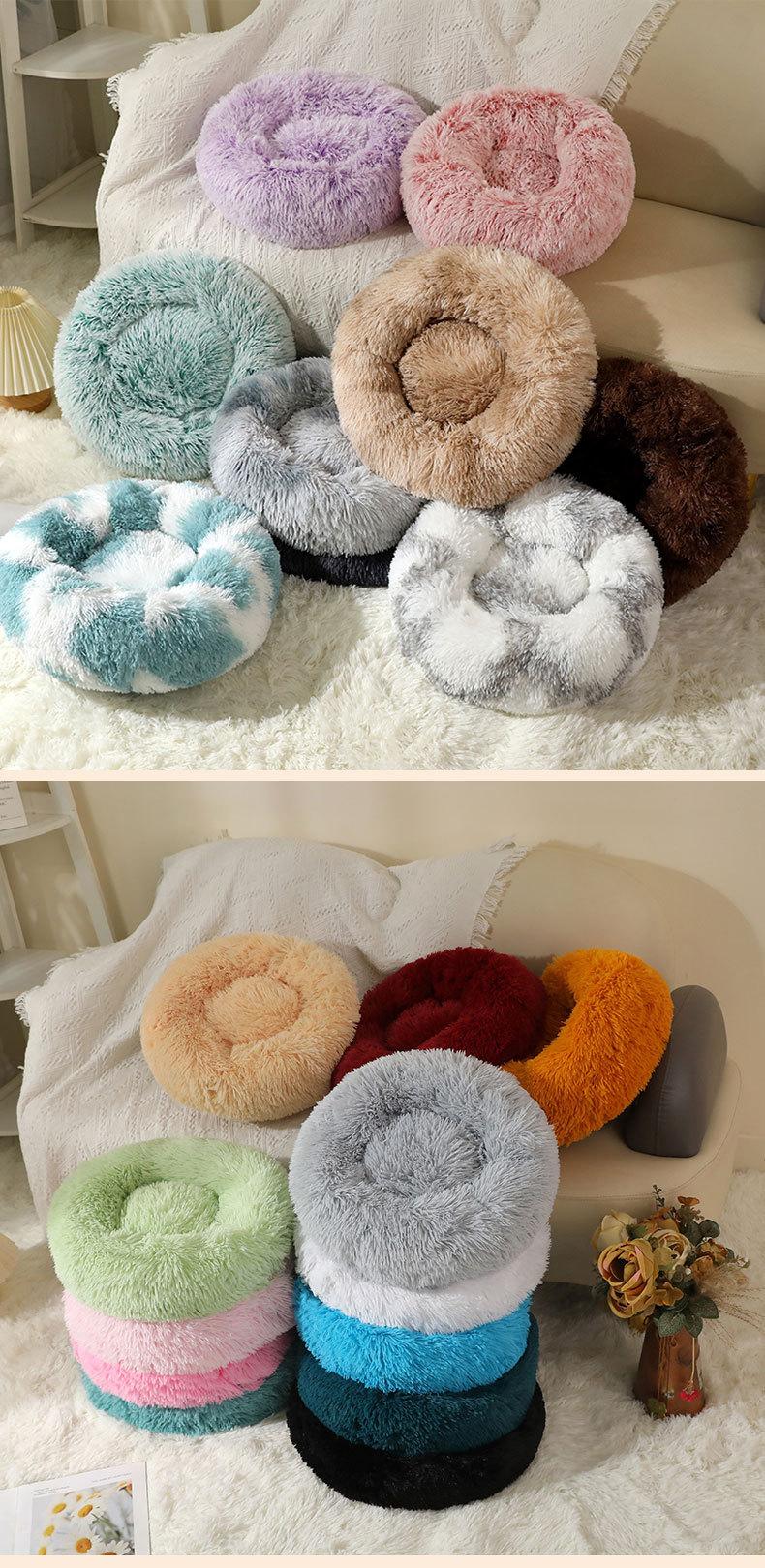 Caseta redonda desmontable para invierno, cálida y profunda para dormir, de peluche, para perros y gatos