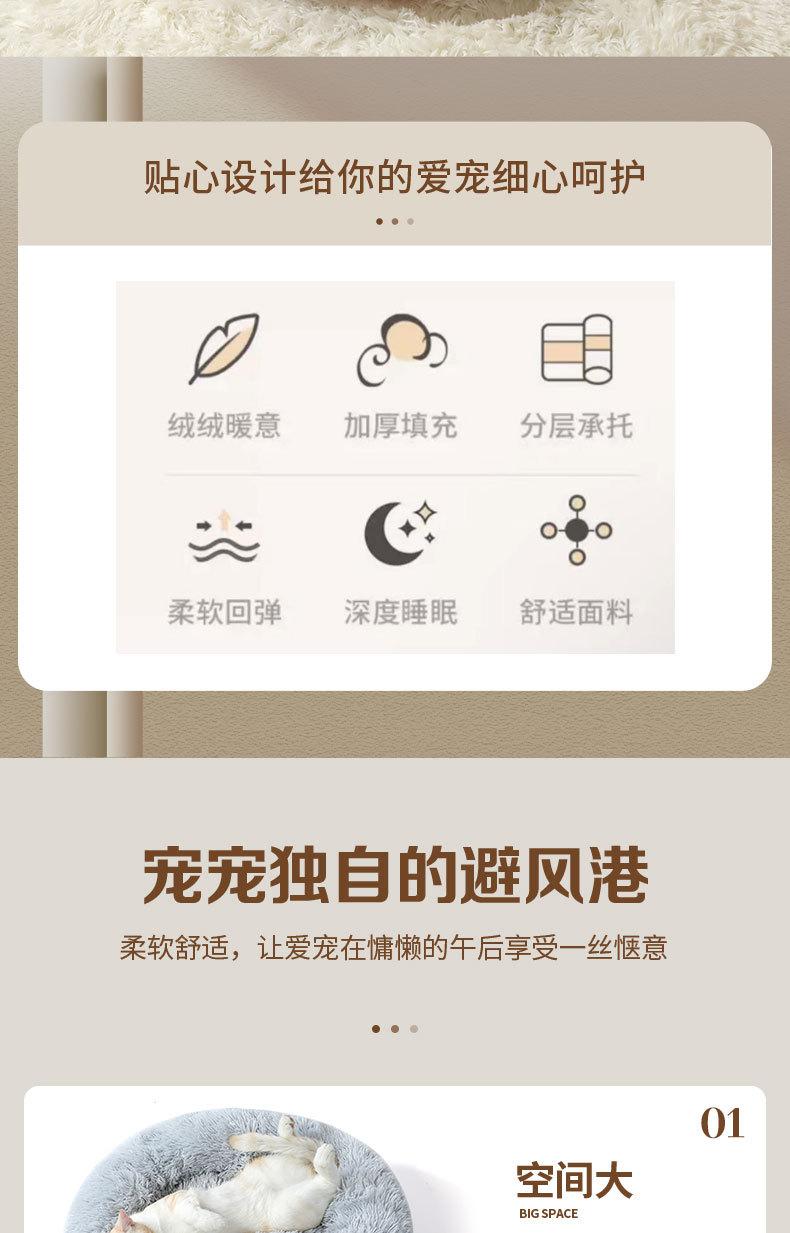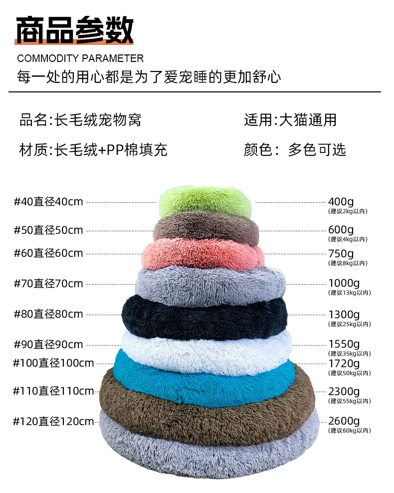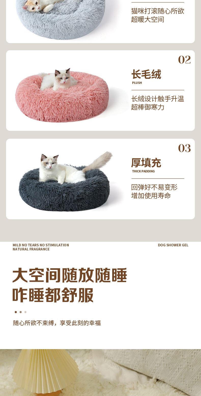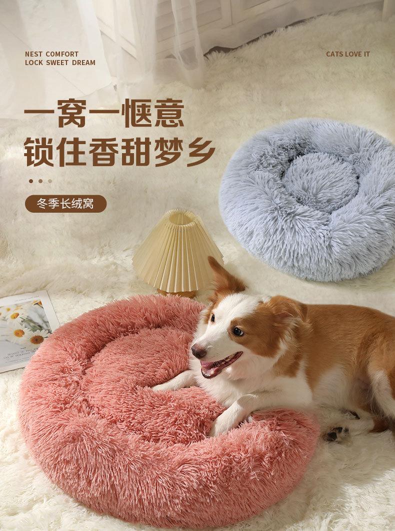 Caseta redonda desmontable para invierno, cálida y profunda para dormir, de peluche, para perros y gatos