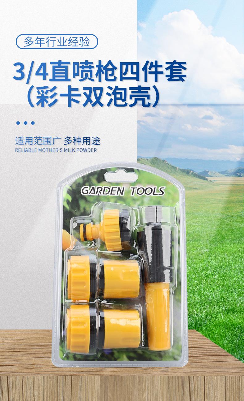 Juego de cuatro piezas de pistola pulverizadora recta de 3/4 (Tarjeta de color de doble burbuja) Pistola de agua a alta presión para lavado de autos domésticos Cabezal de pistola de agua para jardín doméstico