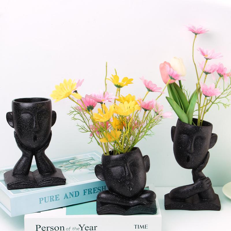 Maceta de resina para libro de personajes creativos, adornos artesanales, características de estudio en casa, lote de macetas carnosas